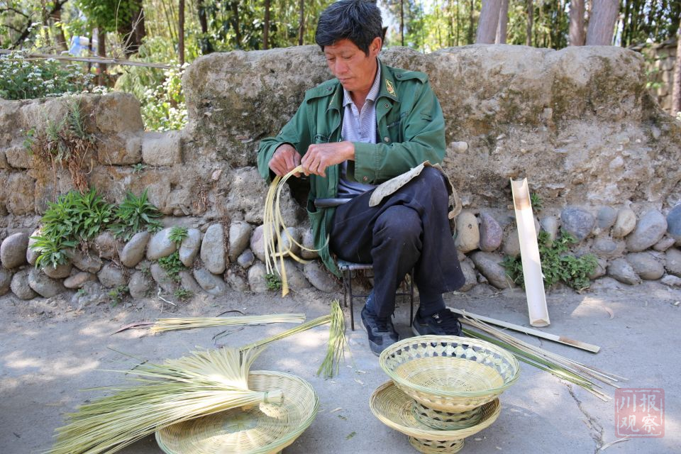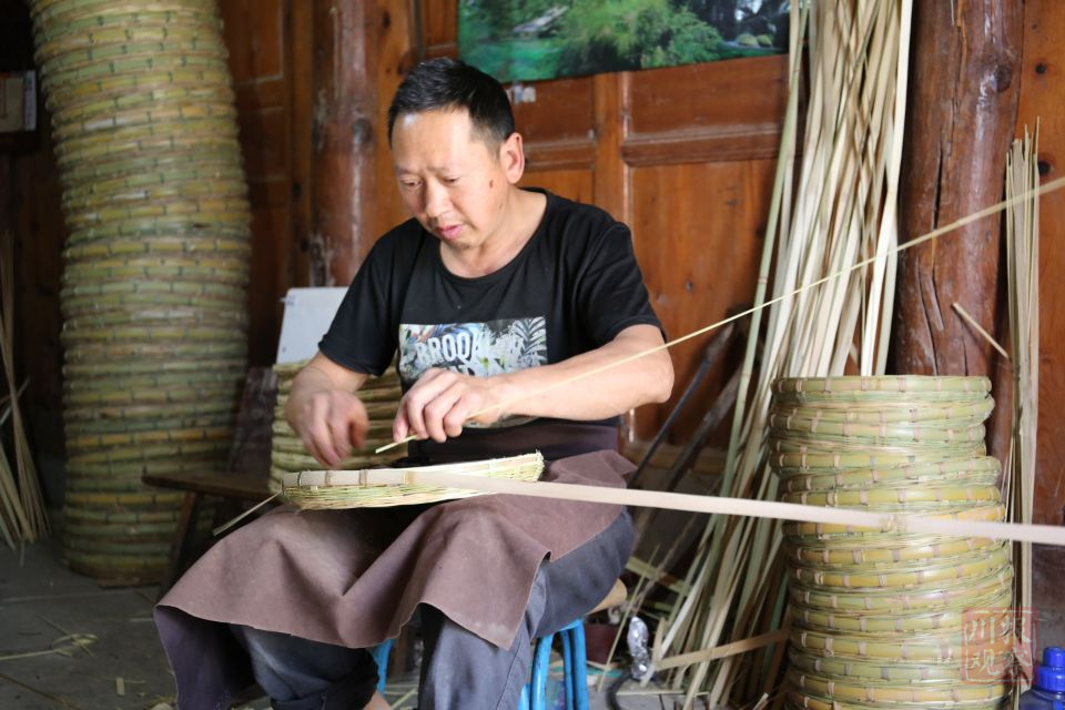 “女儿在成都一所医院上班,儿子在巨龙街上开了个理发店,我们年纪大了,只能在家编这玩意儿,我编的这个质量很好,我自己有车,等编够一车,就在家拉到攀枝花、德昌、西昌等地区卖,我有固定的客户,销路好的很,前几天才卖掉5000块钱的货。”凌源寿一边飞快地劈蔑一边向记者介绍。