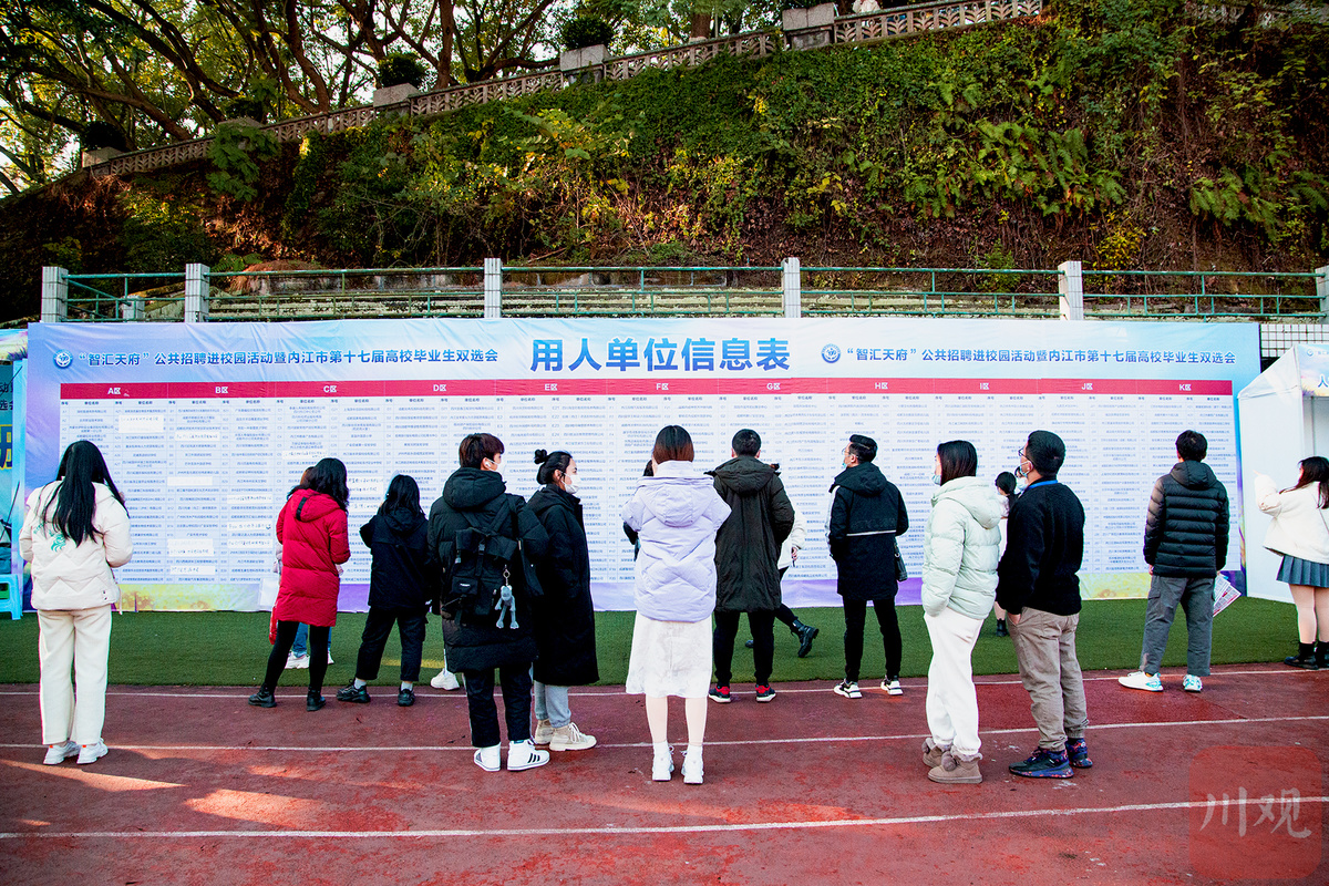 12月12日,冬日暖阳高照,内江师范学院老校区足球场内,内江市第十七届高校毕业生双选会暨内江师范学院2022届毕业生双选会举行。