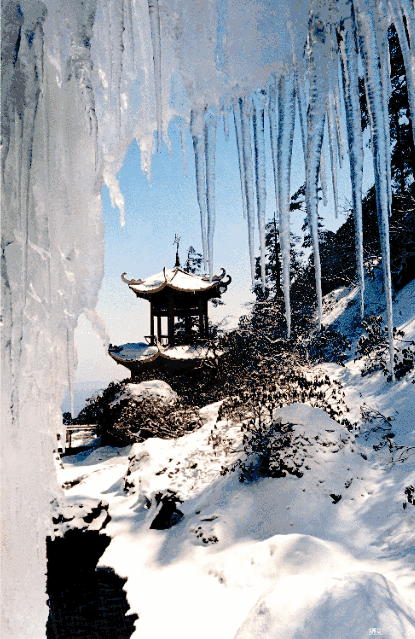 盼望着,盼望着,冬天来了!瓦屋山又被冰雪装点,成了一个银色的梦幻世界。