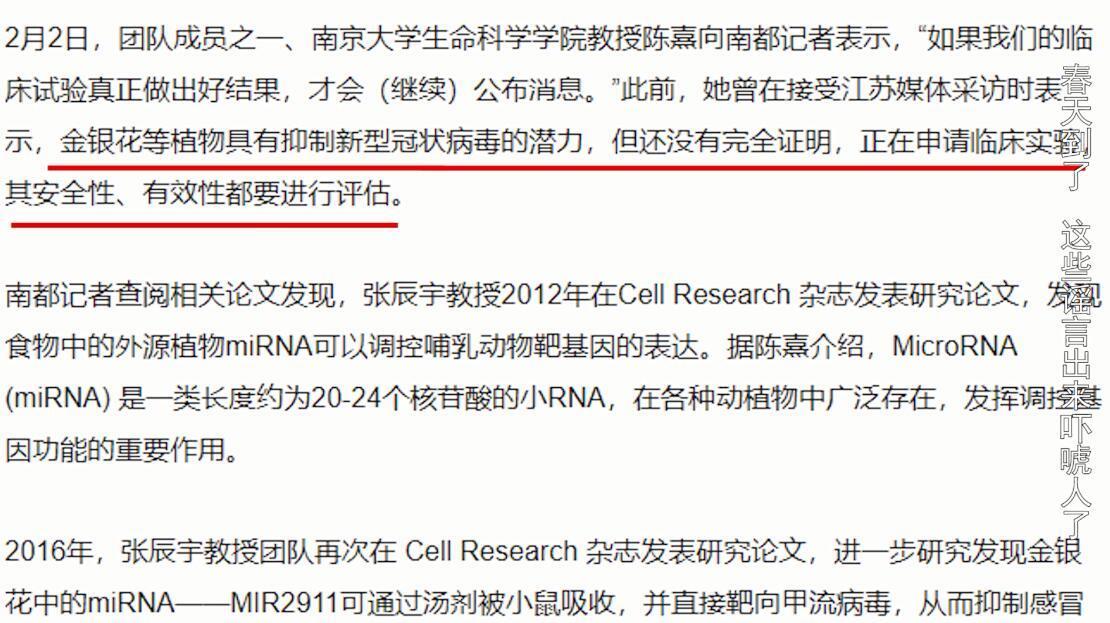 南京大学生命科学学院教授陈熹表示,金银花等植物具有抑制新型冠状病毒的潜力,还没有完全证明,其安全性、有效性都要进行评估。