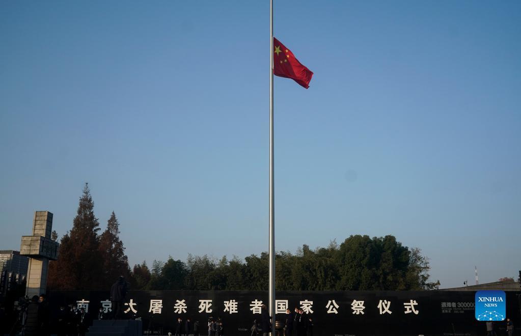 NANJING, Dec. 13 (Xinhua) -- In front of the darkly-dressed crowd, China's national flag flew at half-mast as the country held its eighth national memorial ceremony Monday for the victims of the Nanjing Massacre.