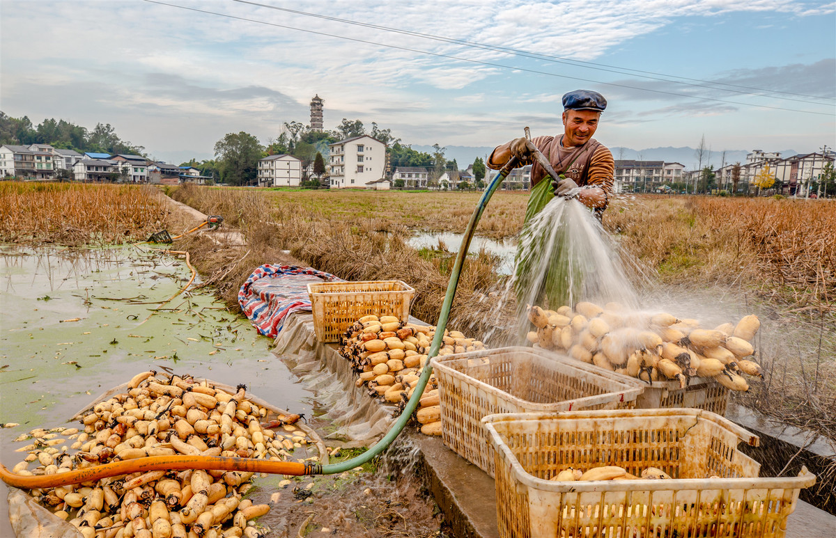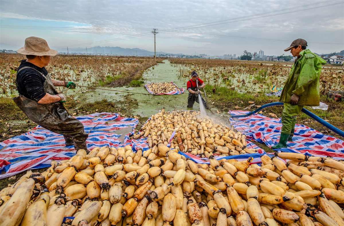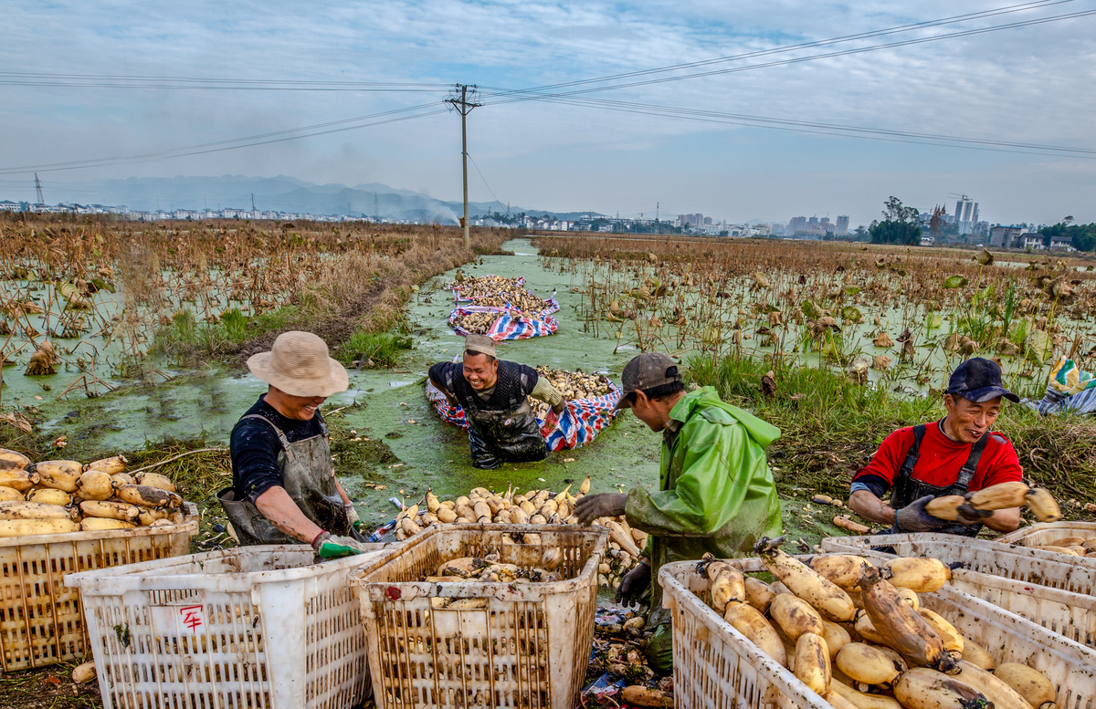 12月12日,达州市民王梦途经开江县“莲花世界”,拍下一组采藕场景。