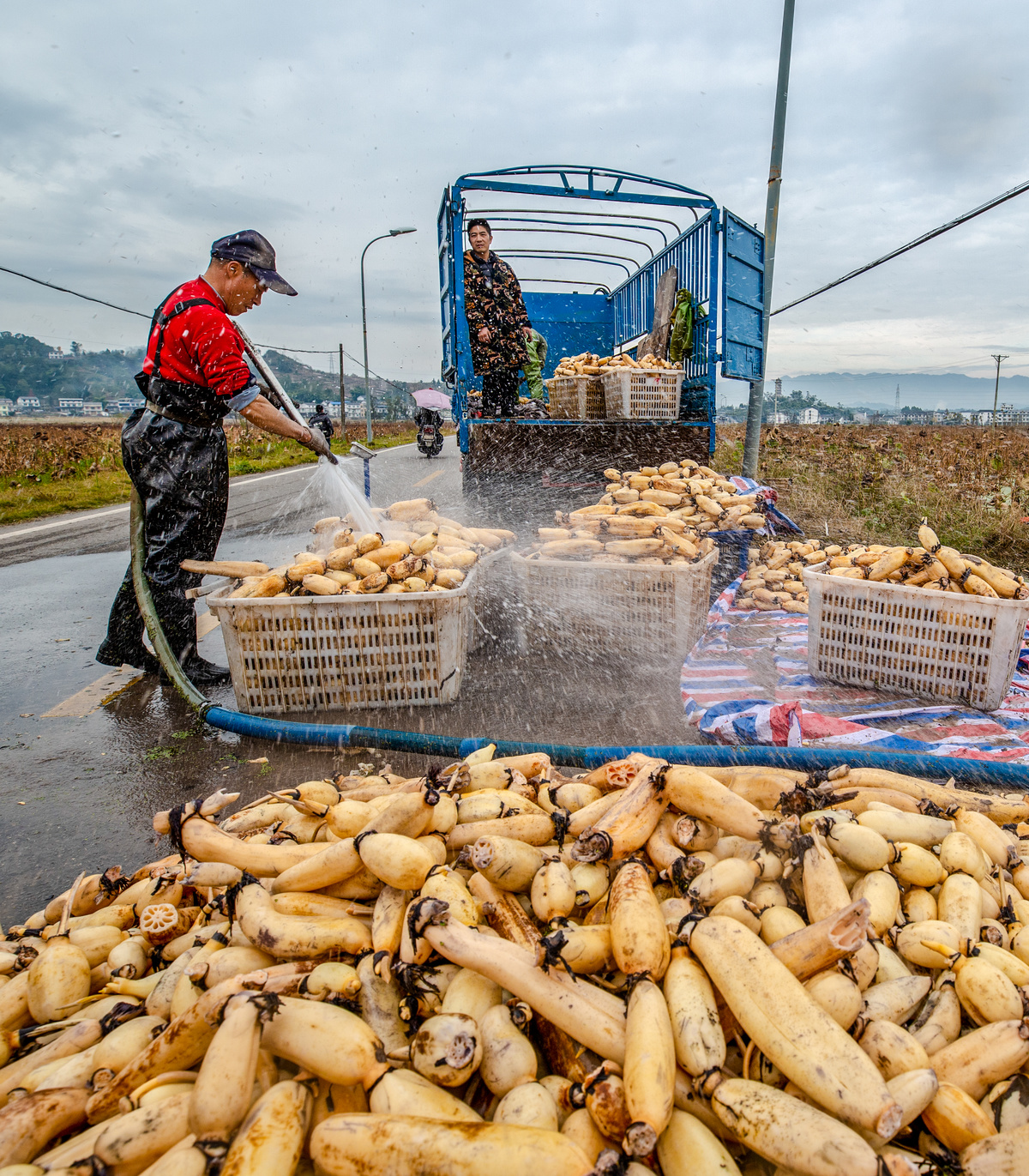 一支是莲藕收购商。上述负责人说,开江大规模出产莲藕远近闻名,引来市内外收购商,这里每天都有开往重庆、南充、巴中等周边区域的运输车。