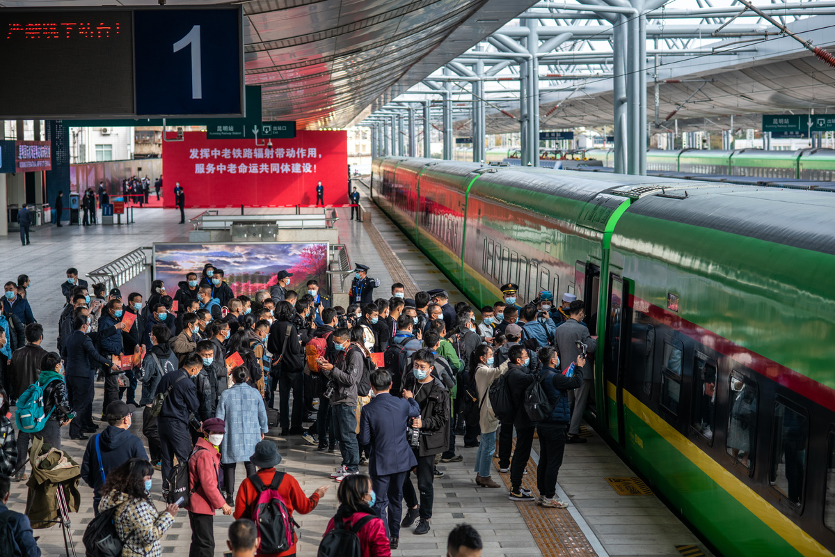 12月3日,乘客在中国昆明站准备搭乘中老铁路首发列车。新华社记者胡超摄