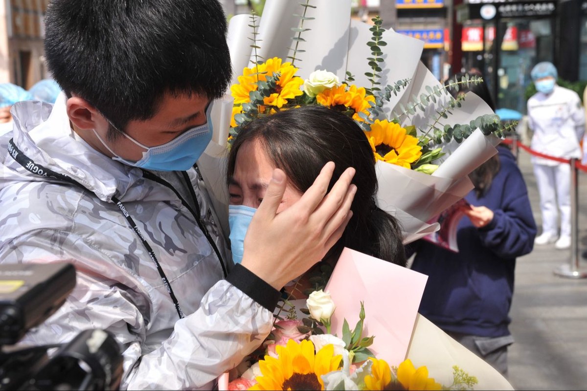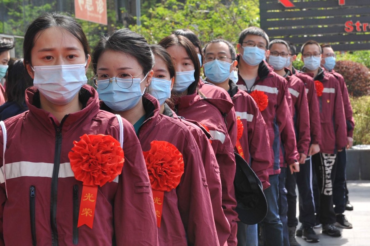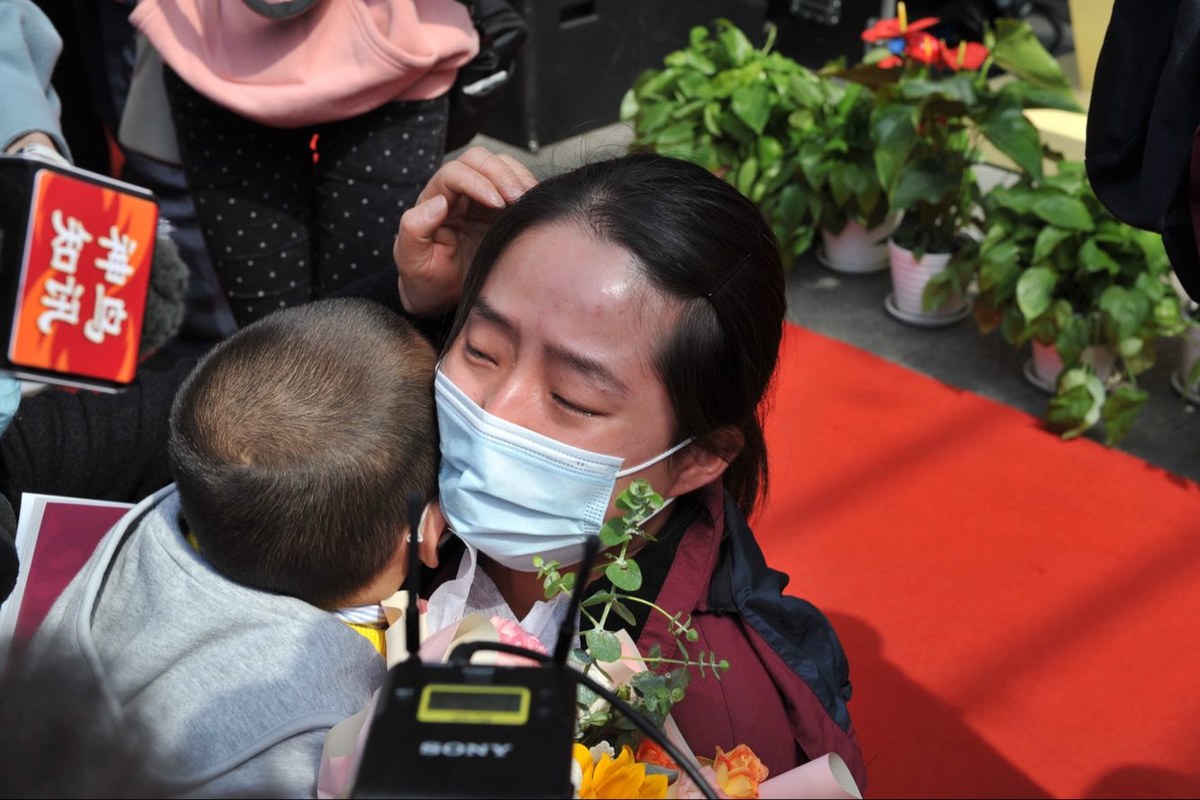 3月31日,成都市第二人民医院急诊科前,15名隔离观察期满14天的援助湖北医疗队队员凯旋归来。另有2名国家(四川)医学紧急救援队员也将随后归来。