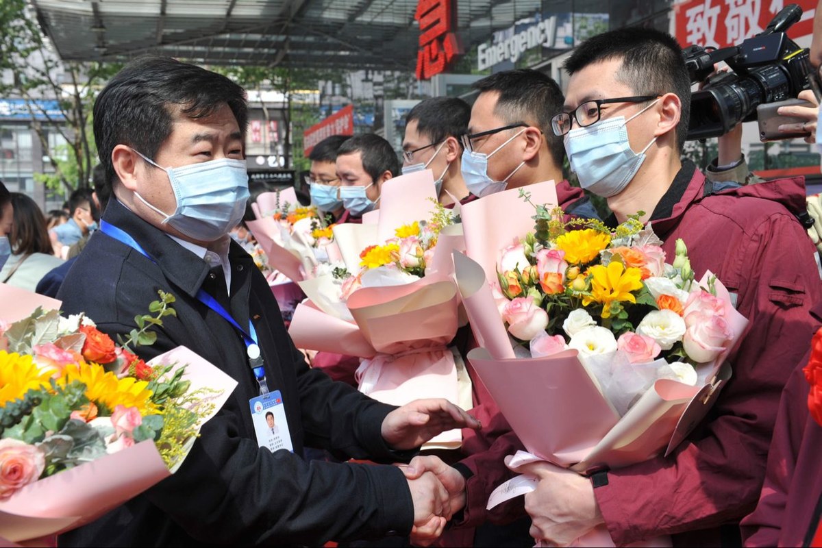 上午11点,载着15名援助湖北医疗队队员的大巴缓缓驶来。他们在湖北武汉抗疫最前线,同湖北人民一起奋战近两个月后,圆满完成任务,平安归来,医院领导欢迎仁济英雄回家。