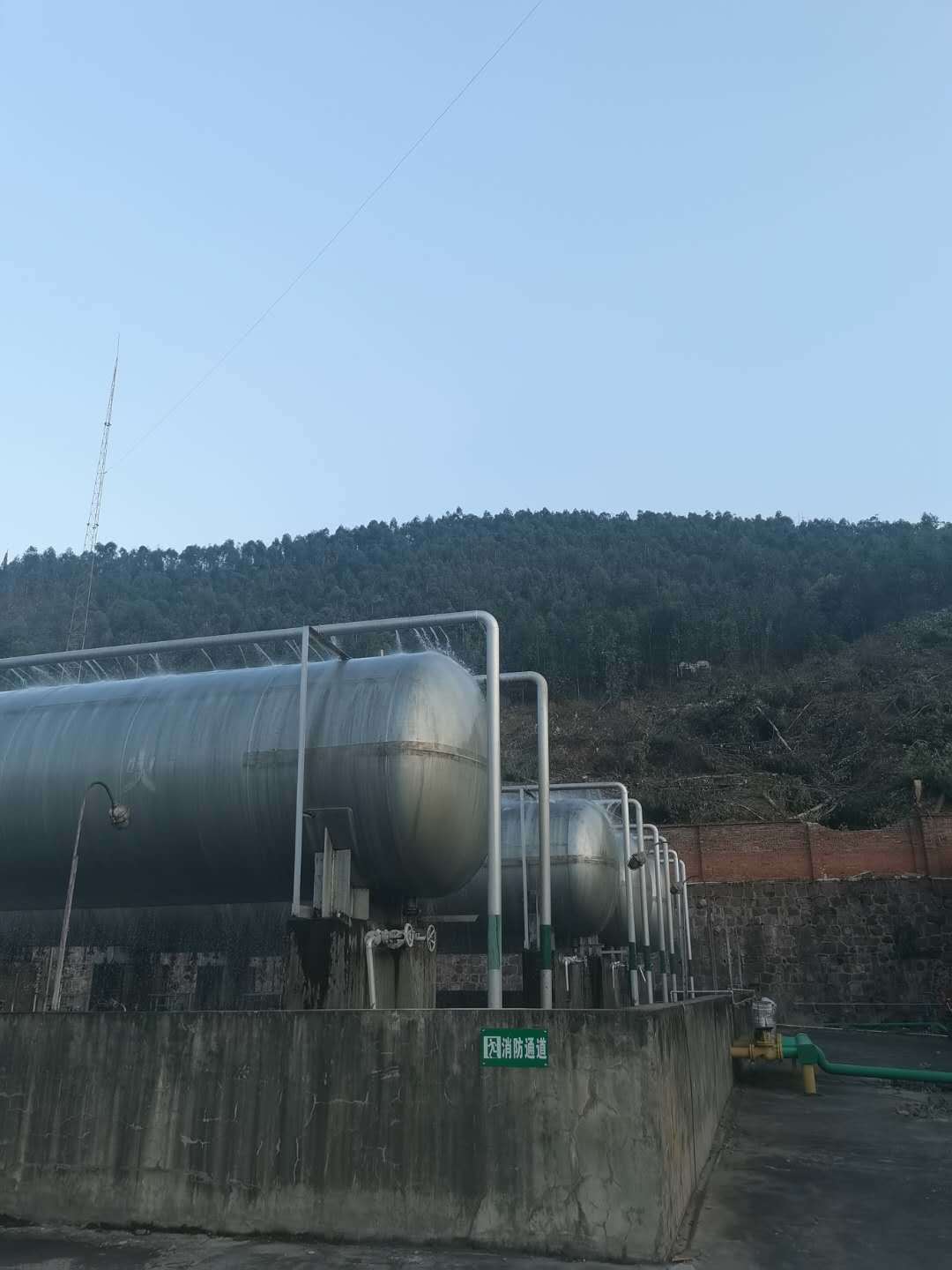 作为凉山州最大的液化气储配站,马道液化气储配站位于一个小山坡上。10多个硕大的银色储气罐整整齐齐排列在一块人工凿成的平台上,每个气罐上,都有两排水龙头,一刻不停地向罐体喷水降温。更后面的山坡上,一群人还在不停地砍伐树木,生成隔离带,油锯的声音响成一片,隔不到10多秒钟,就有一棵油桉呼啸着倒下来。