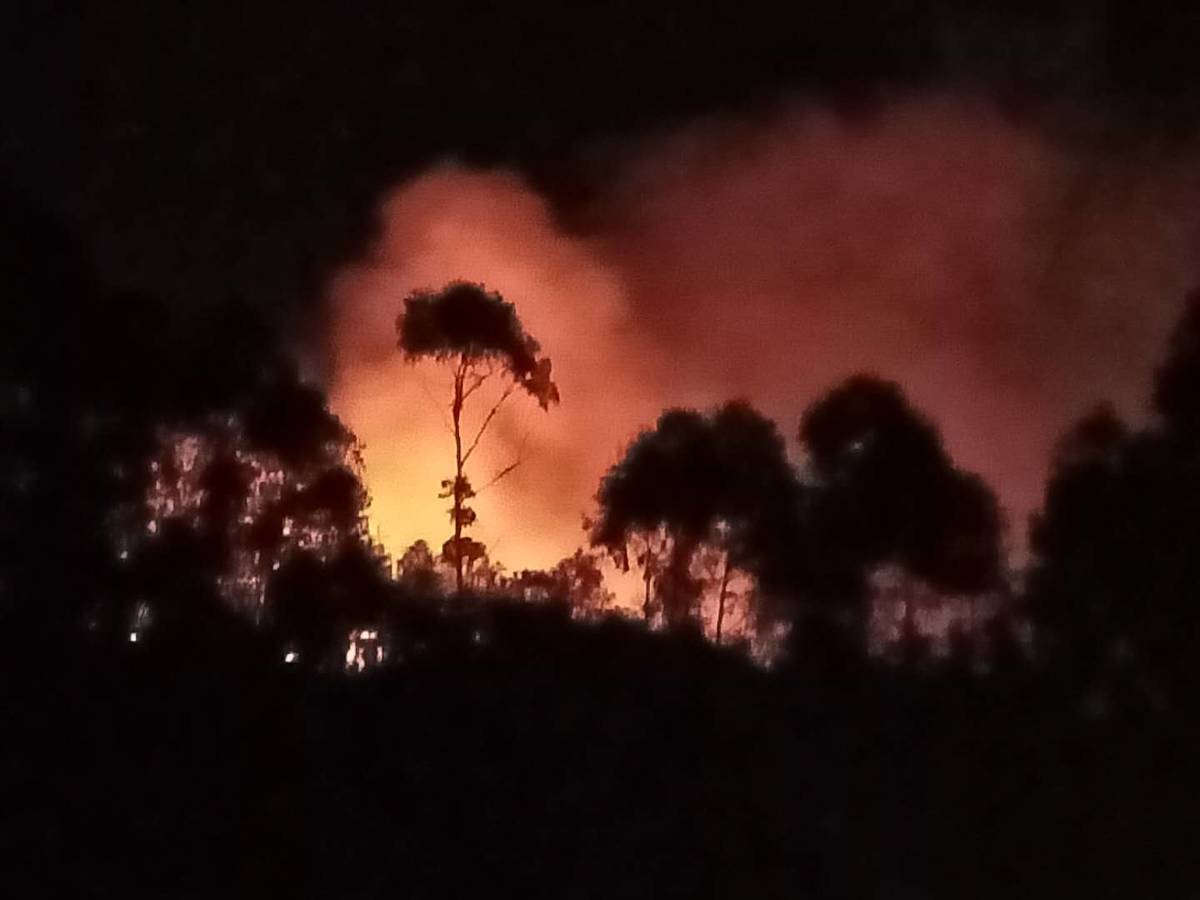 黑暗中,火借风威,风助火势,火苗像毒蛇一样吐着血红的信子,发出巨大的轰鸣,舔舐着山坡,火星四射,像极了恐怖片里的场景。