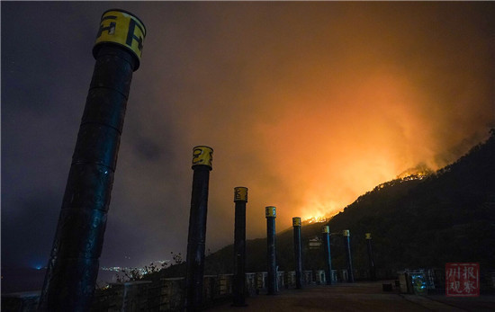 西昌市经久乡森林火灾蔓延,4月1日凌晨,泸山正面有多处火点持续燃烧。
