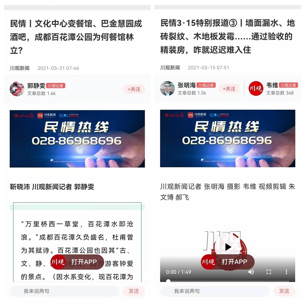 针对群众最关心、涉及面较广的问政留言,“问政四川”第一时间派出记者现场调查、深入采访,推出辣味足、影响大、效果好的民生报道500余篇,有效推动群众反映的“操心事、烦心事、揪心事”得以切实解决,获得众多网友点赞。