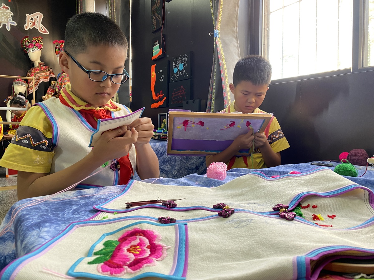 在美术老师晏萄看来,尽管学习刺绣的时间不长,但学生们的变化明显,“很多老师向我反映参加彝绣的孩子们都比以前更耐心,上课更专心。”