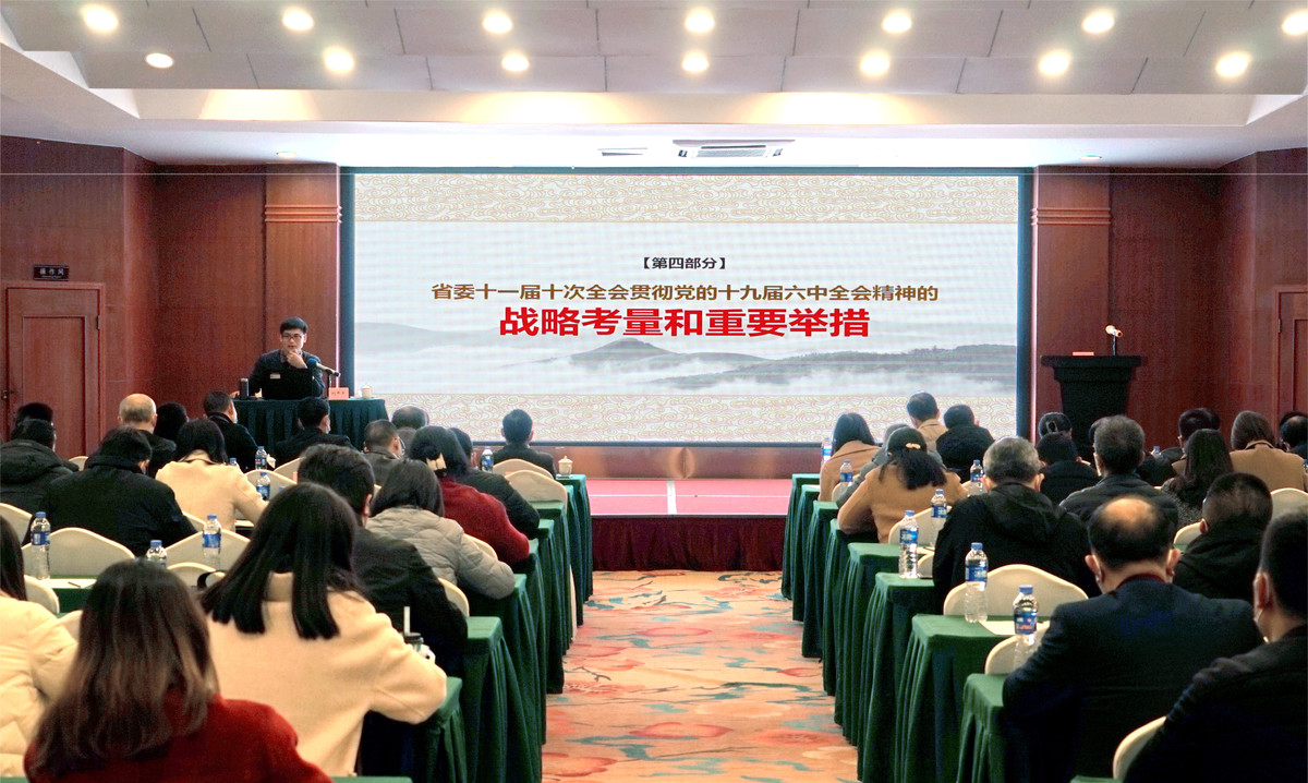 刘开军教授以《学习贯彻党的十九届六中全会精神和省委十一届十次全会精神》为主题,围绕恰逢其时的百年决议、马克思主义中国化的方向与道路、十九届六中全会的里程碑意义、省委十一届十次全会贯彻党的十九届六中全会精神的战略考量和重要举措等四个方面进行了系统阐述和深刻解读。与会同志认真聆听、详细记录,一致认为宣讲报告主题鲜明、系统全面、深入浅出、催人奋进,既有政治的高度、又有理论的深度,进一步加深了人社系统党员干部对党的十九届六中全会精神和省委十一届十次全会精神的理解和把握。