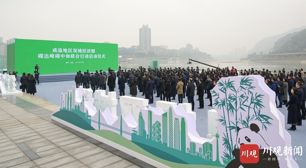 当日,川渝两省市在宜宾三江口长江生态公园举行了成渝地区双城经济圈碳达峰碳中和联合行动启动仪式。陈敏尔、彭清华、唐良智、黄强等出席,通过视频连线方式,听取了重庆两江新区、丰都县和四川凉山州、甘孜州有关清洁能源项目启动建设情况的汇报。在热烈掌声中,陈敏尔、彭清华、唐良智、黄强共同启动联合行动。有关行业领域代表在仪式上诵读了联合行动倡议。