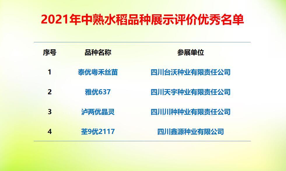 经过激烈角逐,最终“川单99”“成单716”等23个玉米品种,“泰优808”“川康优2115”等25个水稻品种脱颖而出。