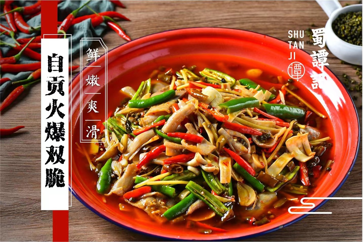 起源于东汉时期的自贡盐帮菜,闻名于素有“千年盐都”、“美食之府”之称的四川自贡。而蜀谭记根植于自贡菜系文化,把家乡的原汁原味带到了上海,令五湖四海无辣不欢的老饕们,在这里尽情享受地道的盐帮川味。蜀谭记把当地名厨将相请到魔都,挖掘菜品精髓,可谓煎、煸、烧、炒,自成一格;煮、炖、炸、熘,各有章法。同时还在自贡当地建立了“盐帮菜研发基地”,并与烹饪技术学校进行深度合作,在菜品研发与人才培养方面都得到了充分的保障。
