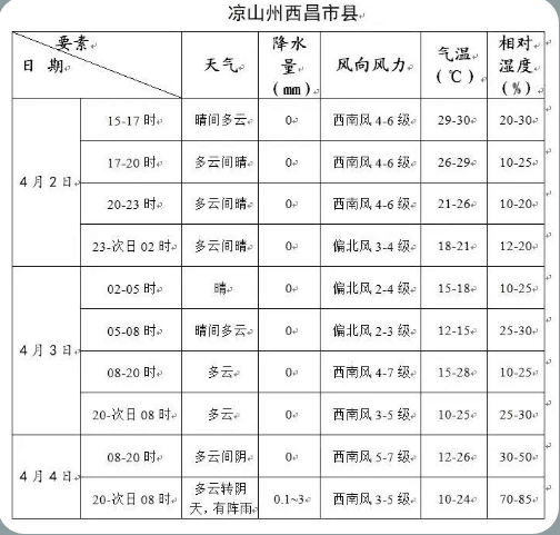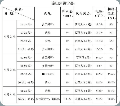 最近三天,凉山州4个林火发生地的天气预报如下↓↓↓