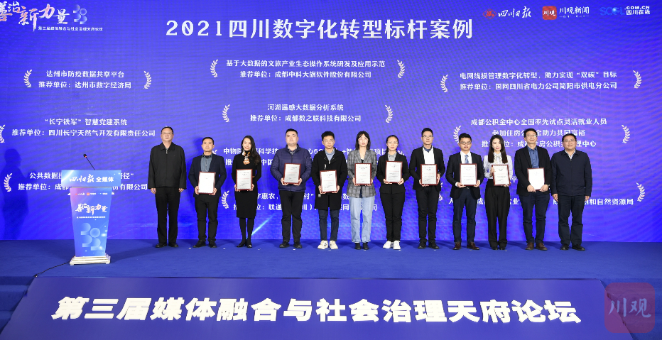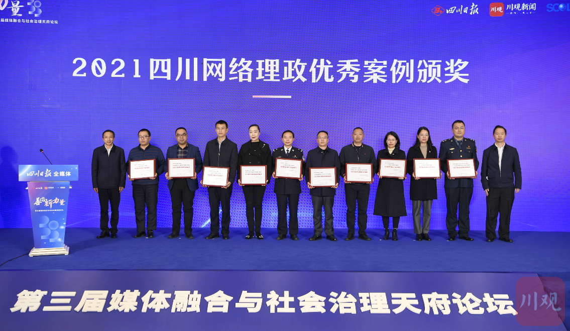 论坛为2021四川网络理政优秀案例、2021四川市县优秀网络传播案例和2021四川数字化转型优秀案例进行颁奖,正式启动四川云21183+N省域治理协作平台升级暨四川城市治理指数报告编制。