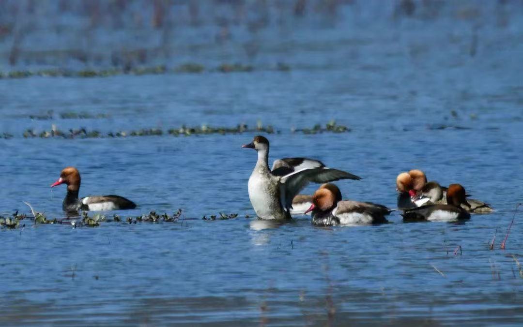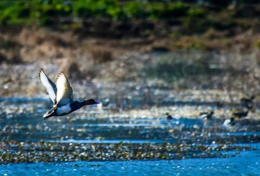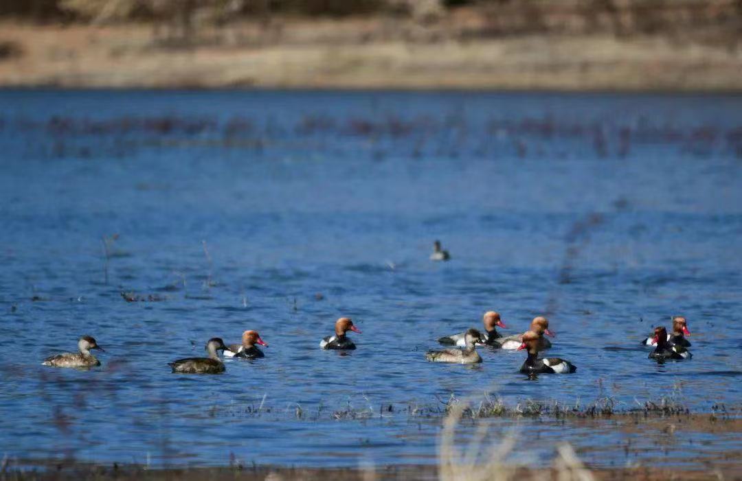 12月15日,攀枝花市仁和区跃进水库里,阳光洒在水面,青头潜鸭、赤嘴潜鸭、骨顶鸡、白鹭等候鸟三两成群嬉戏。丰富多样的自然生态、富饶充盈的食物资源、干净澄澈的水源环境,让这里成了鸟儿们的宜居家园。