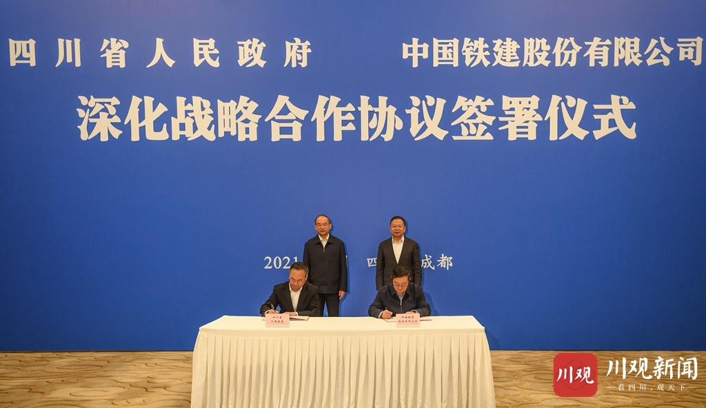 12月15日,四川省人民政府与中国铁建股份有限公司在成都签署深化战略合作协议。省委副书记、省长黄强,中国铁建股份有限公司董事长汪建平出席签约仪式并共同见证协议签署。