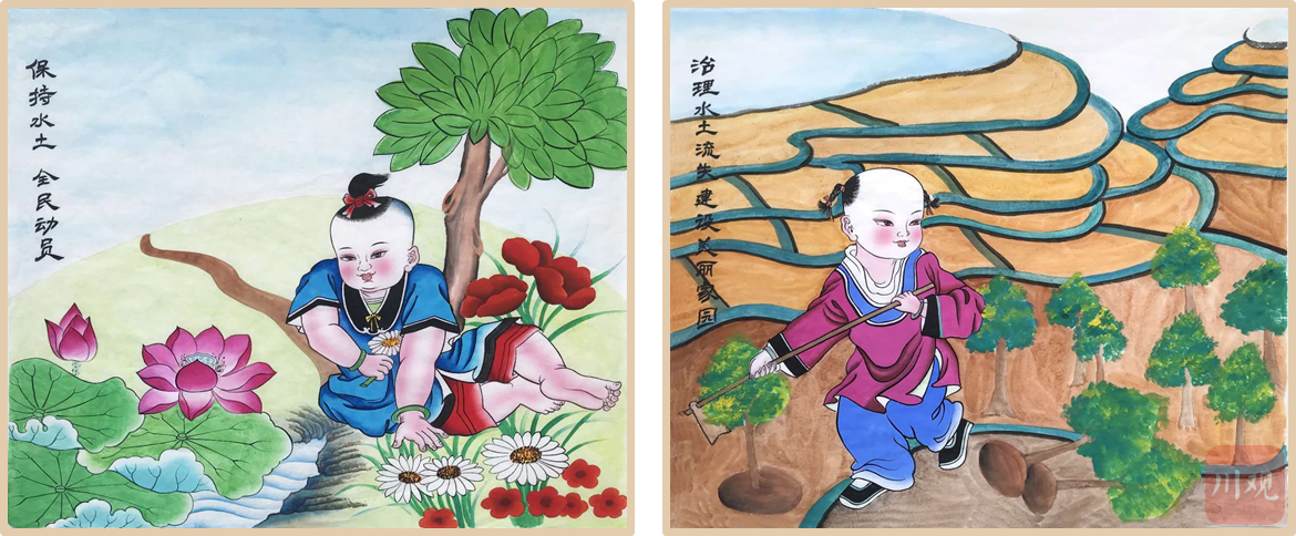 12月15日,走在绵竹市麓棠镇玫瑰新村,绵竹年画形式的治理水土流失的标语随处可见。