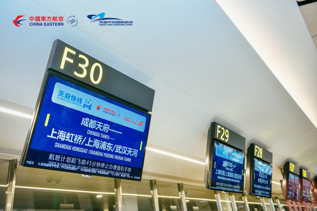 东航从天府机场出发的上海快线每天最多8班、武汉快线每天最多7班,“在点对点的出行便利外,这为中转旅客也提供了更多的衔接机会。”