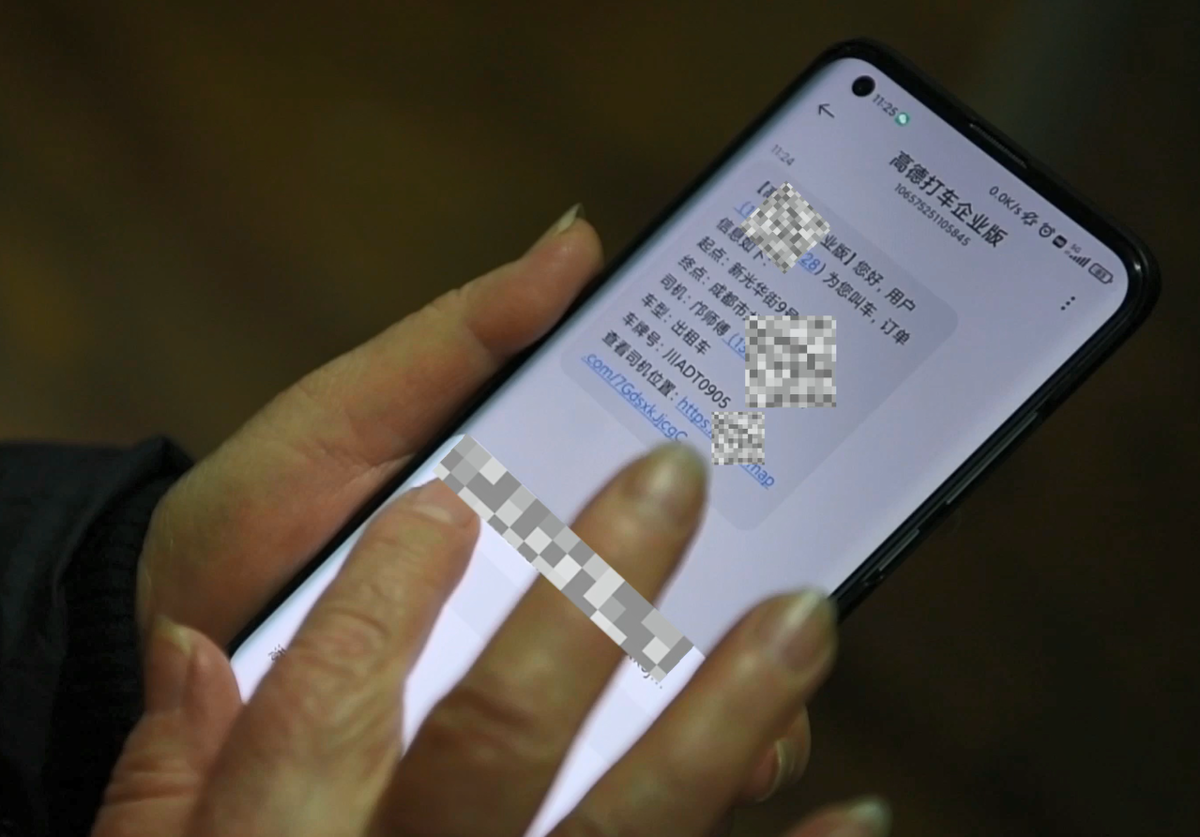 打开短信,记者发现这是一条来自某打车软件的信息。短信内详细注明了起点、终点、司机电话、车型、车牌号等。此外,还有一条网址链接,点开后是一幅电子地图,和一般打车软件一样,显示了车辆位置、距乘客距离和预计到达时间,“1.1公里,3分钟,下楼刚好。”袁碧秀起身,和记者一起来到楼下。