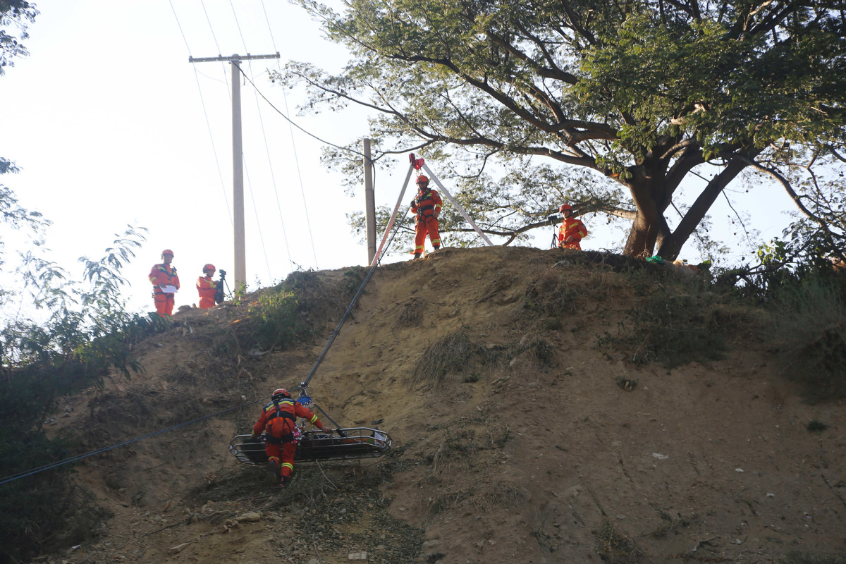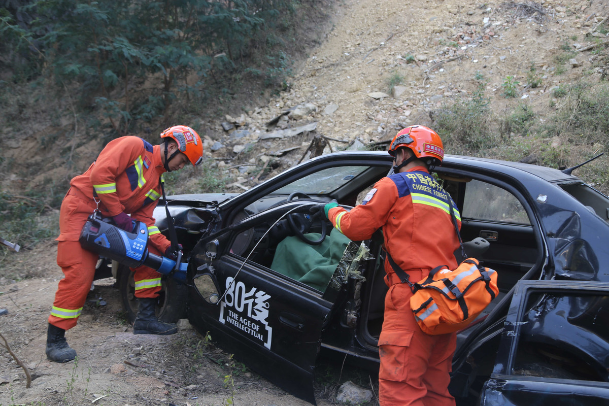 在救援现场,指战员架设绳索下降到谷底,根据人员被困及车辆受损情况,采用剪切器、剪扩器、多功能无齿锯等救援工具完成车辆破拆,人员解困后立即实施紧急救治,随后通过绳索利用担架,将被困人员上升转移到安全地带,交由医疗卫生部门进行全面检查治疗。