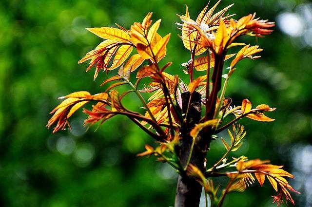 还有一种不得不提的春天食材,就是香椿芽。“三月八,吃椿芽。”清明时节的香椿芽,鲜嫩脆口,营养价值丰富。清代康有为在《咏香椿》中赞其“食之竟月香齿颊”。