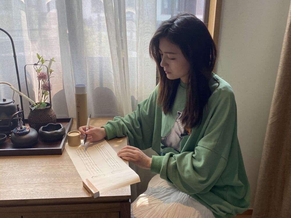 王潇老师在修改乐谱。