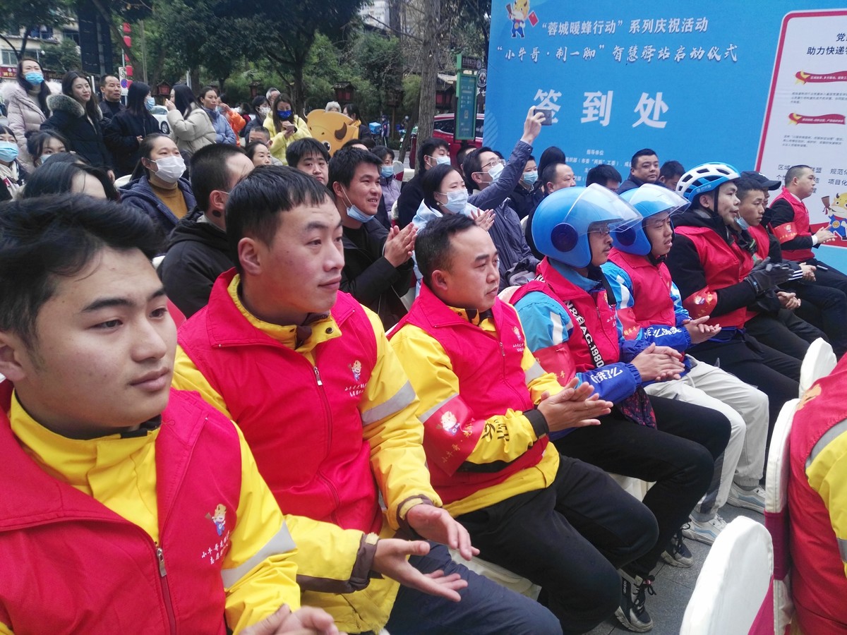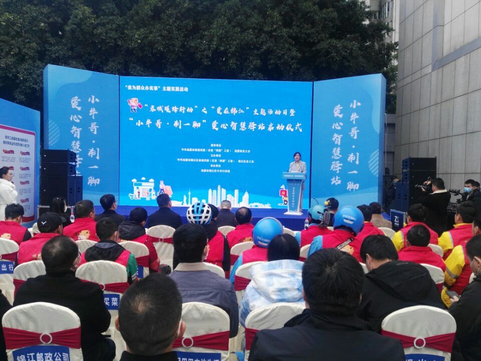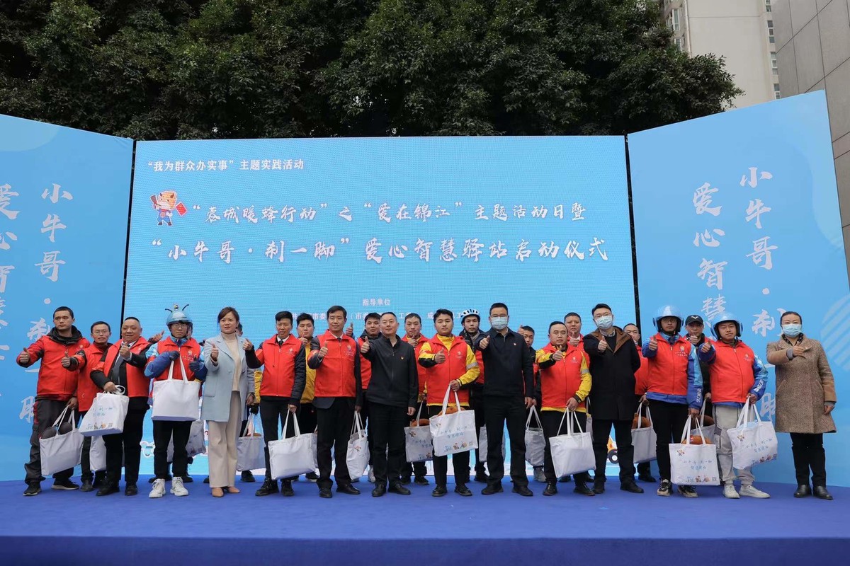 12月17日下午,成都市首个24小时不打烊,全新升级的“小牛哥·刹一脚”爱心智慧驿站登场。