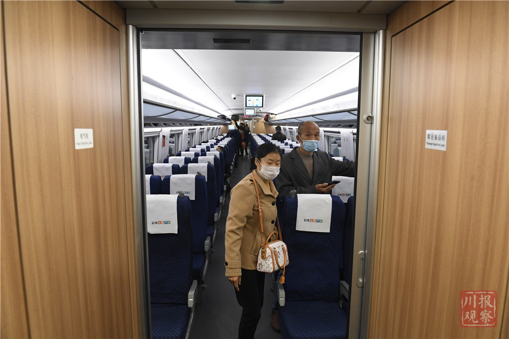 记者注意到,与一般首发动车起点站上座率很高不同,从成都东出发的旅客并非很多。铁路工作人员表示,这趟环线动车对沿线城市的旅客来说更为方便,沿途站点上车旅客会更多。
