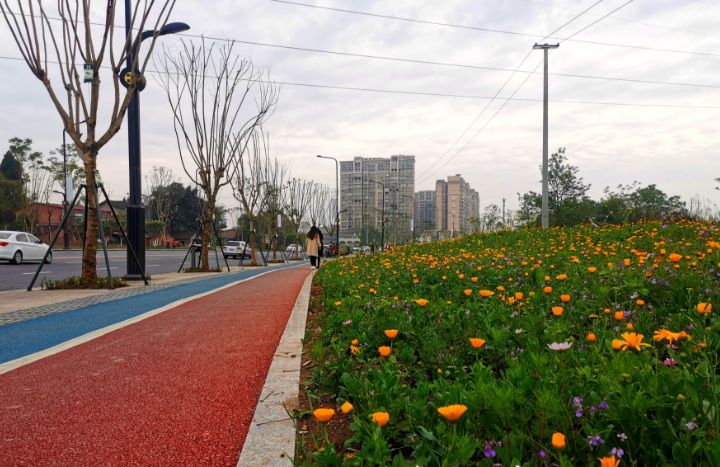 4月9日,在内江高新区乡村振兴示范区学院路道路改造提升工程建设现场,记者看到刚刚完成改造提升的学院路“颜值”大幅提升,吸引不少市民去“打卡”。