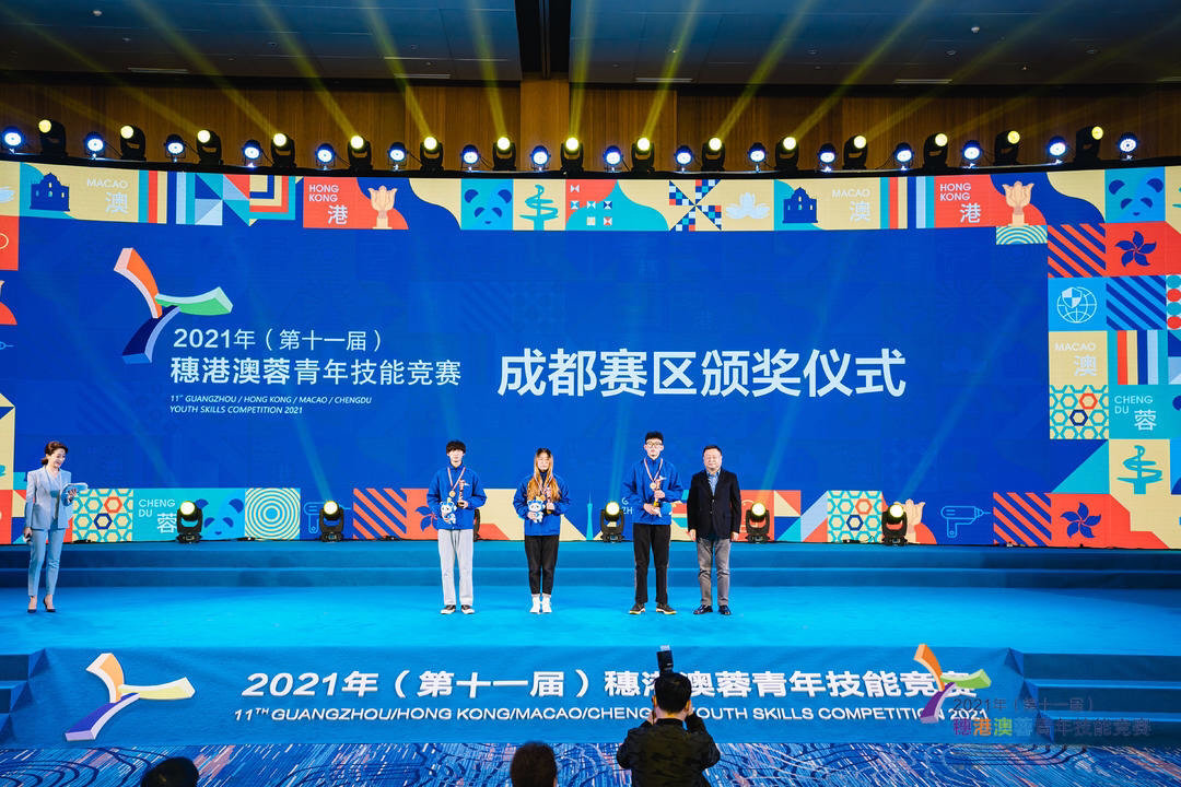 在为期5天的赛程里,穗港澳蓉四地64名选手共参加了“电气装置”“网络安全”“移动机器人”“商品展示技术”和“糖艺/西点”等5个竞赛项目的比拼。大赛组委会按照世界技能大赛标准,评出了各分赛区的获奖选手,并现场为选手们和优秀裁判员、指导老师颁奖。