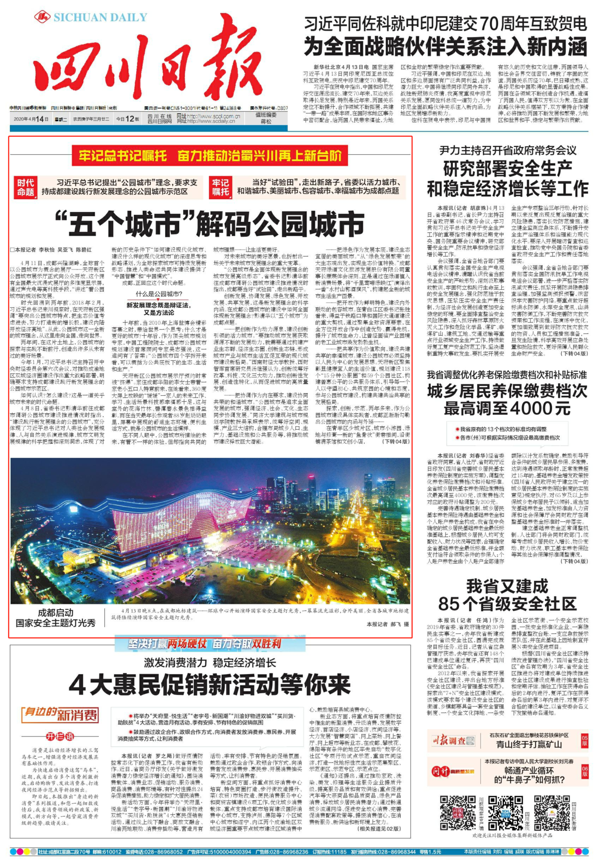 4月8日,省委书记彭清华前往成都市调研公园城市建设推进情况时指出,“建设践行新发展理念的公园城市”,充分体现了习近平总书记对人类社会发展规律、人与自然关系演进规律、城市文明发展规律的科学把握和深刻洞悉,体现了对新的历史条件下“如何建设现代化城市、建设什么样的现代化城市”的深邃思考和战略谋划,为全球探索城市可持续发展新形态、推进人类命运共同体建设提供了“中国智慧”和“中国模式”。