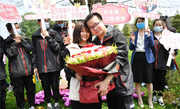 面对惊喜,肖雪梅接过鲜花,点头答应。她感动地说:“遇到你是我最幸福的事情。你是我一生只有一次的惊喜,与你相爱,我很幸运。”