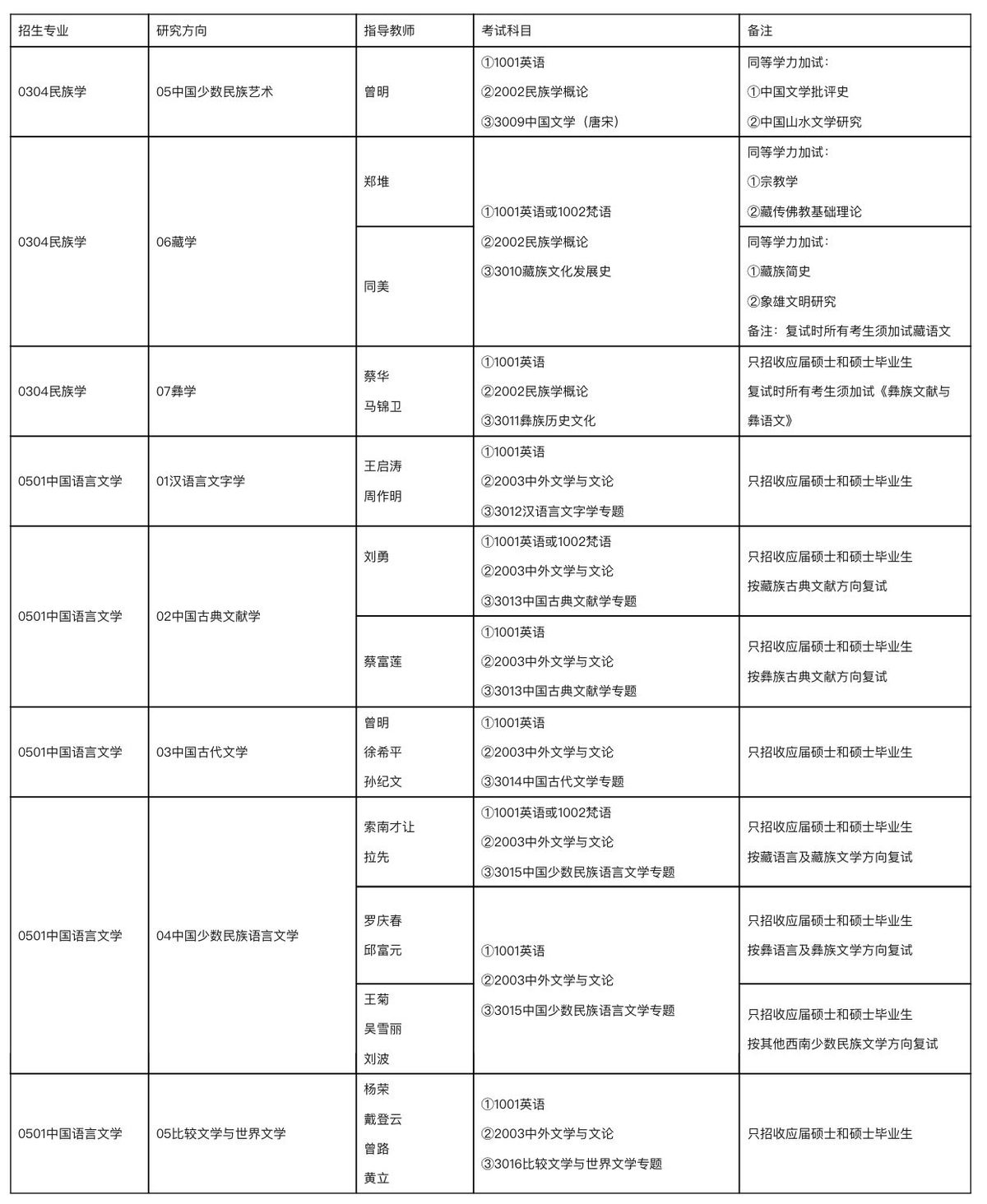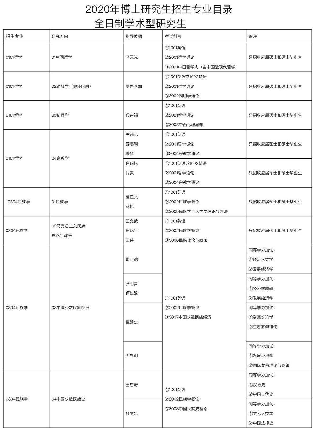 详见西南民族大学2020年博士研究生招生专业目录(详情见表格)