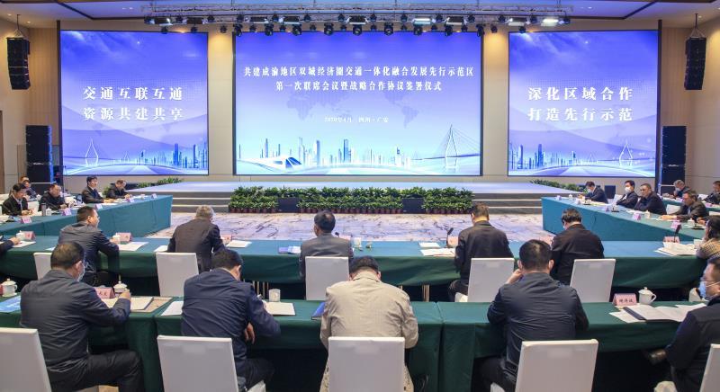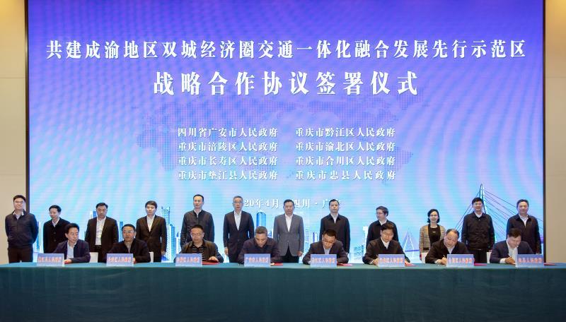 建设成渝地区双城经济经济圈,交通先行。4月14日,共建成渝地区双城经济圈交通一体化融合发展先行示范区第一次联席会暨战略合作协议签署仪式在广安市举行,广安市与重庆市合川区、渝北区、长寿区、黔江区、涪陵区、垫江县、忠县等7区县共同签署了战略合作协议。按照协议,八方将统筹协调,形成示范区跨区域项目共同对上争取、统一规划建设、同步投入使用的协同发展模式,加强在铁路建设、公路建设、航空领域、水运领域、运输服务、项目投融资等交通方面深入合作。
