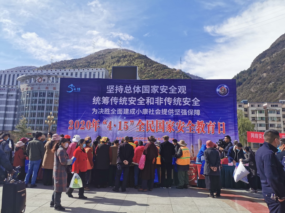 4月15日是全民国家安全教育日。当天,由阿坝州委国安办、州委宣传部牵头,以“坚持总体国家安全观,统筹传统安全和非传统安全,为决胜全面建成小康社会提供坚强保障”为主题,阿坝州全民国家安全教育日大型主题宣传教育活动在马尔康市九州广场举行。