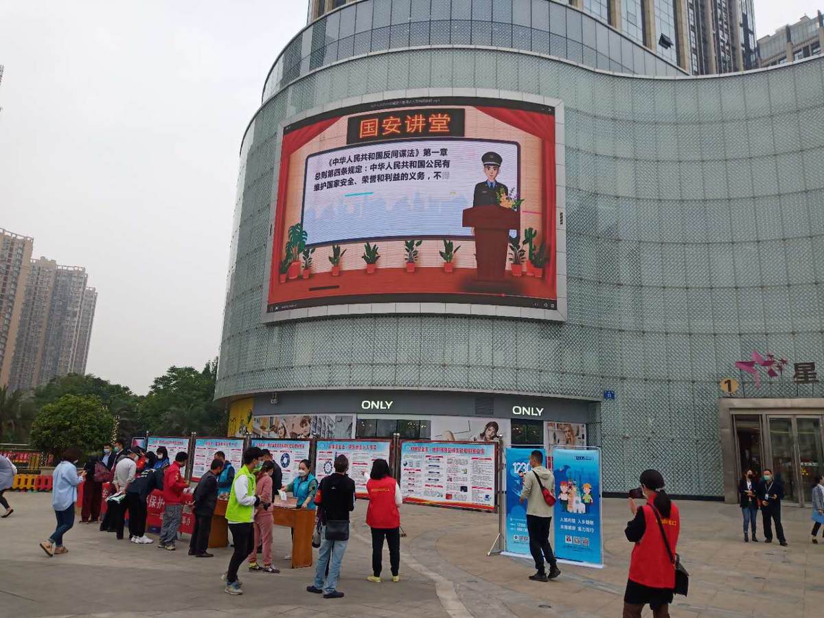 保密等级如何区分?密码怎么设置更安全?国家安全举报电话是多少?4月15日,一场以国家安全为主题的教育宣传活动在成都市成华区龙潭上古天地广场、猛追湾天府熊猫塔水景广场等地同步展开,同时利用辖区写字楼、社区宣传栏等LED屏进行宣传,在社区群推广“线上”学习视频。
