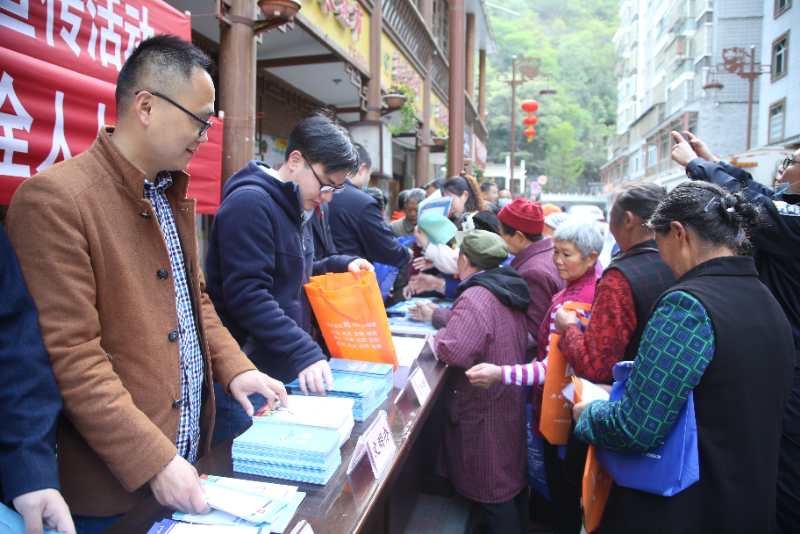 宝兴县在街道上搭台宣传国家安全知识。宝兴县委宣传部供图