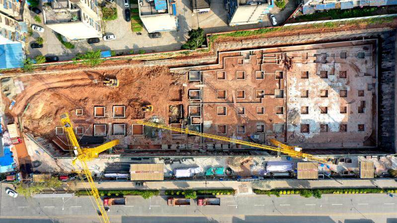 “目前,我们正在完成土方转运、基础底板和承台施工。”严钦渝介绍,受地形等因素影响,将在项目中加入“抗浮锚杆”施工工艺,确保工程质量。