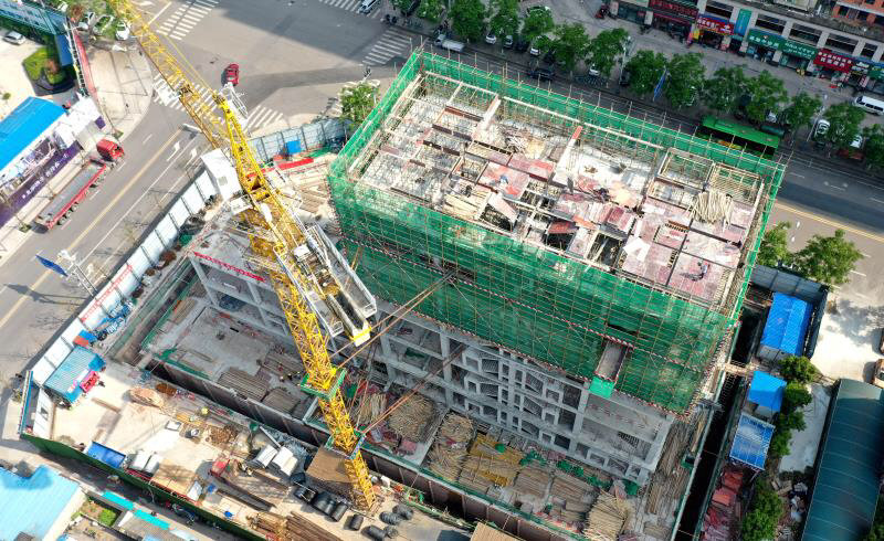 塔吊挥舞铁臂转运材料,施工人员各司其职……当日下午3时许,记者在惠民街与正兴街交界处的顺庆区白土坝农贸超市项目建设现场看到,身披“绿衣”的大楼已经拔地而起,工人正齐心协力抢回受疫情影响耽搁了1个多月的工期。