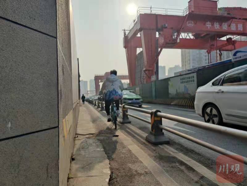上午10点,记者来到了静居寺路与汇泉南路交叉路口,记者注意到,该路段正在进行地铁施工占道,两边各预留了两条机动车道和一条非机动车道。该条路段经过的自行车和电动自行车特别多,不少非机动车驾驶人走机动车车道行驶。