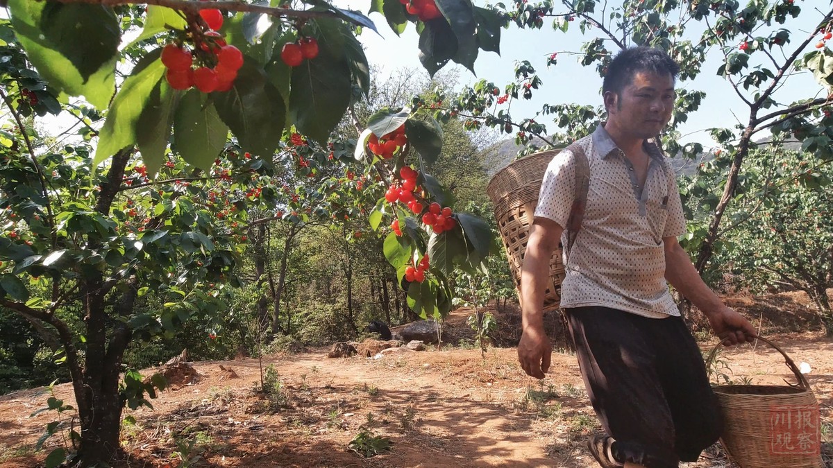 村民宋德俊种植了3亩多樱桃,目前陆续上市,他每天背着背篓上山采摘樱桃,背到山下的公路边销售。“来来回回要跑很多趟,还是很辛苦。”他说。