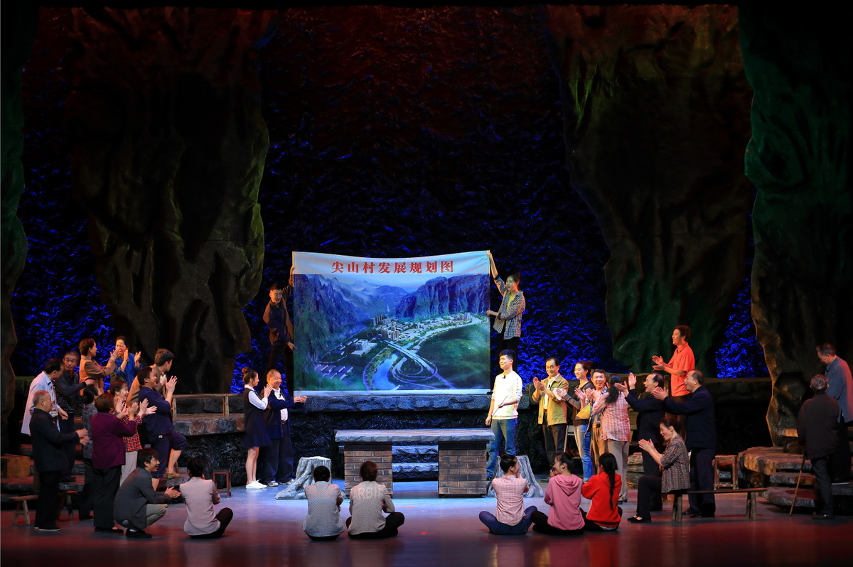 在话剧《滴灌》中,尖山村因严重缺水成为深度贫困村,村民为生计“抢水”。“响水洞”业主为一已私利长期霸占稀缺水资源,两股力量势不两立。矛盾愈演愈烈,县文化局驻村工作队积极响应党中央的号召,主动投身火热的脱贫攻坚主战场,从解决落后的思想观念入手,一起挖掘致贫根源,寻找脱贫措施。