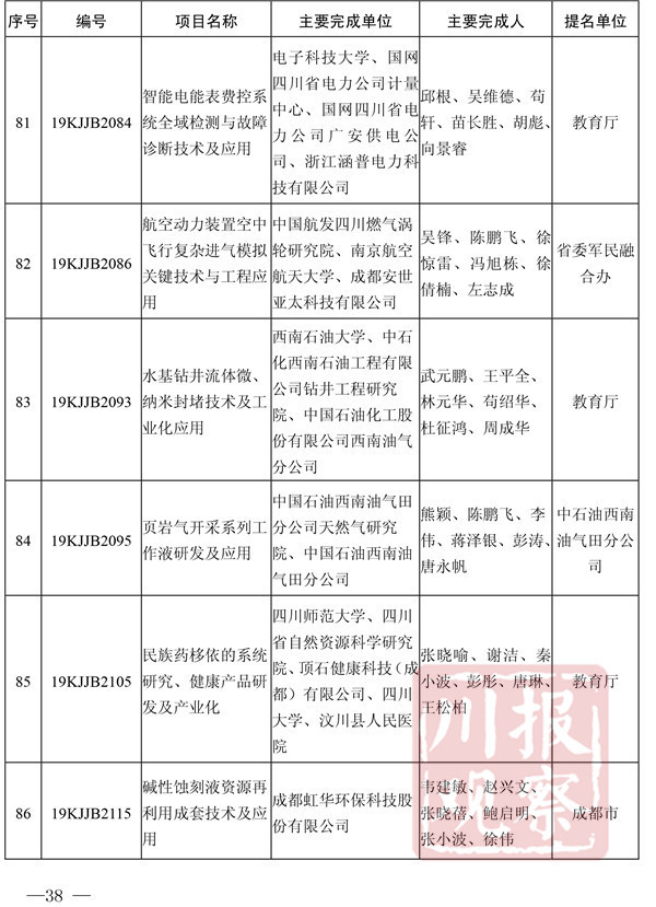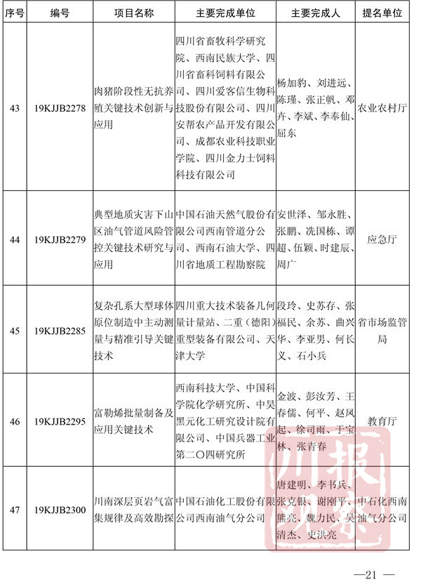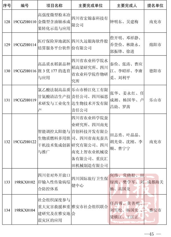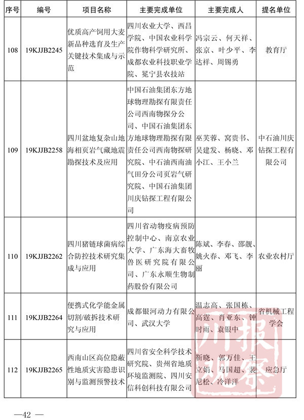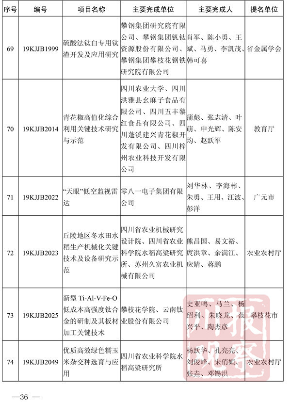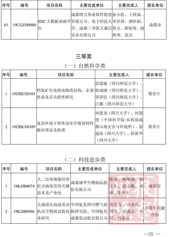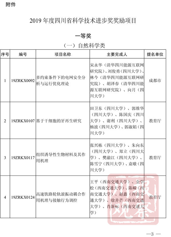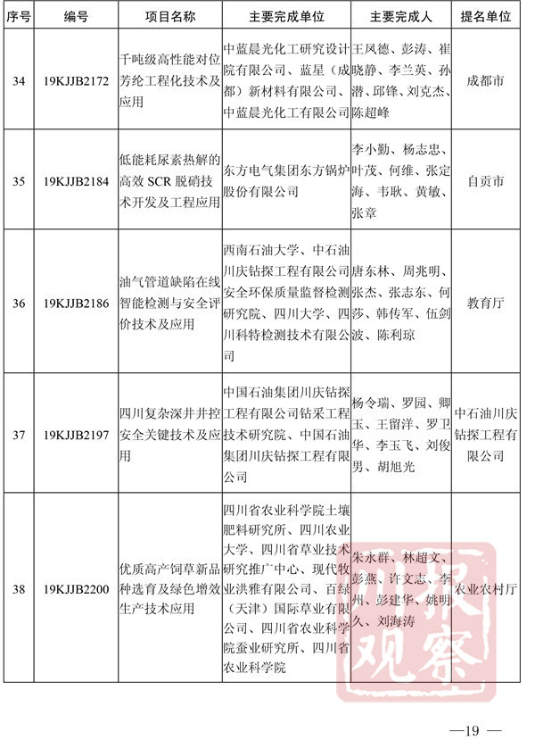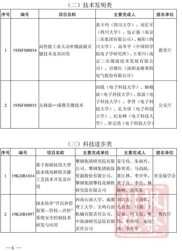 4月21日上午,在蓉举行的四川省科学技术奖励大会公布了2019年度四川省科技进步奖获奖名单。
