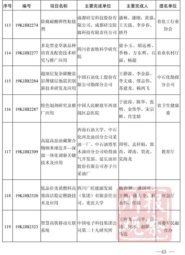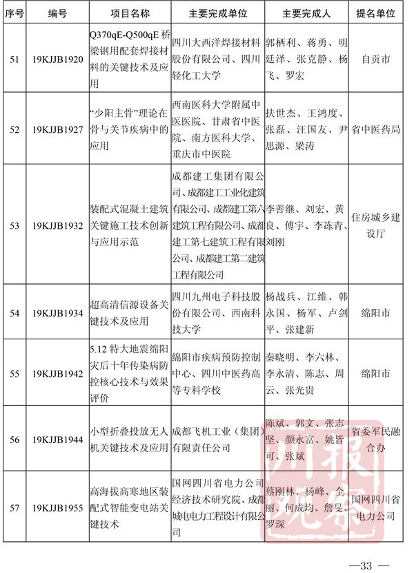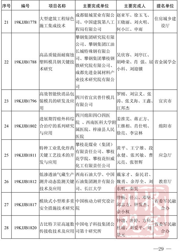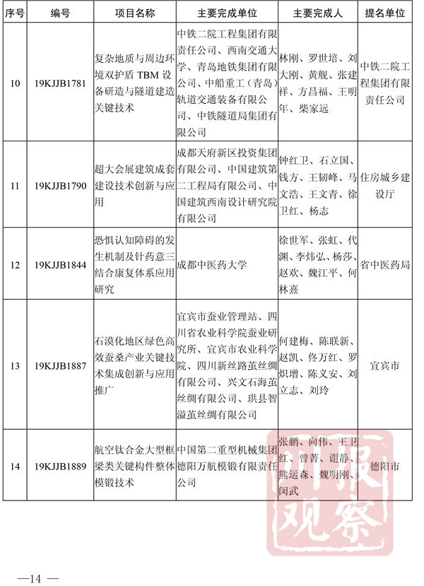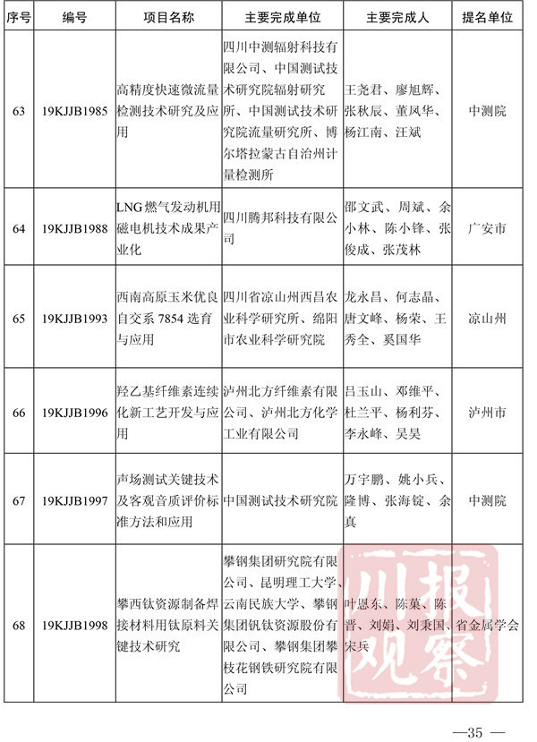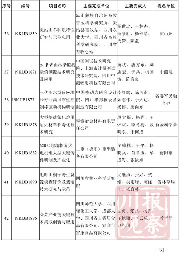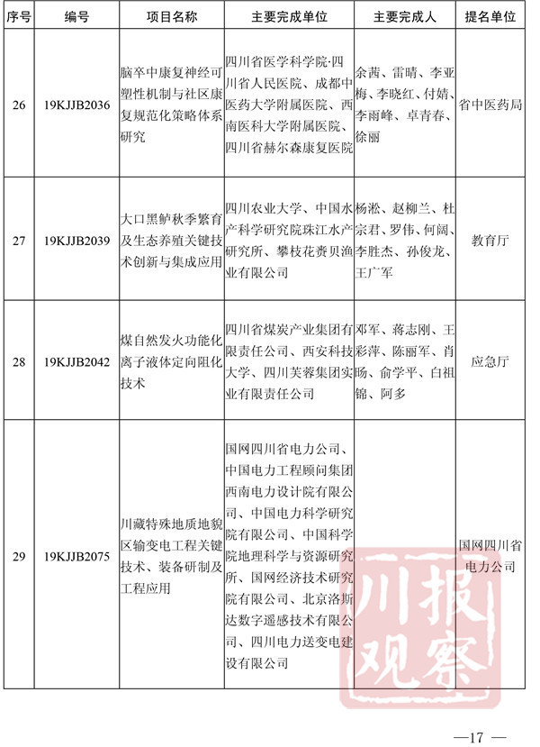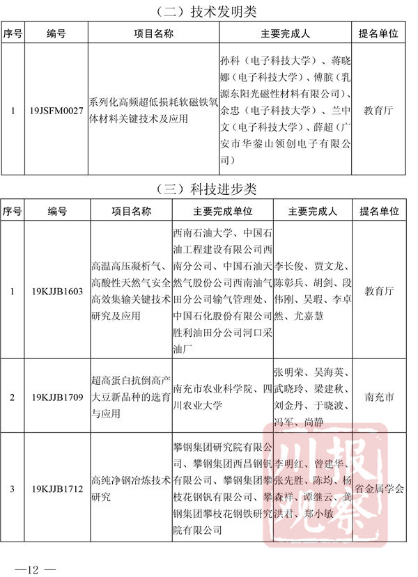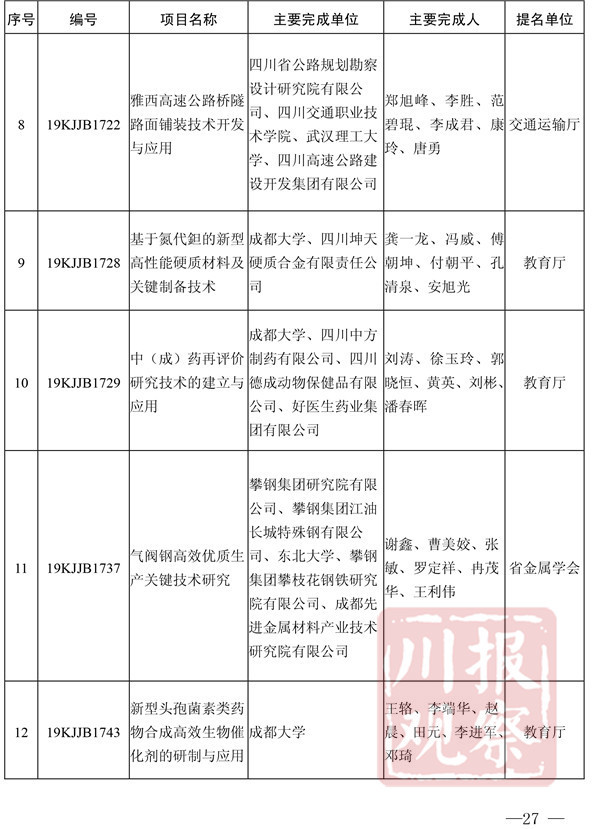4月21日上午,在蓉举行的四川省科学技术奖励大会公布了2019年度四川省科技进步奖获奖名单。