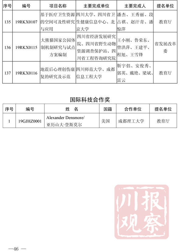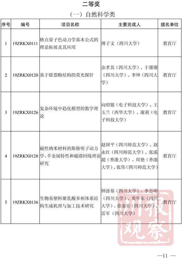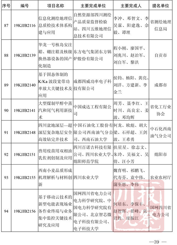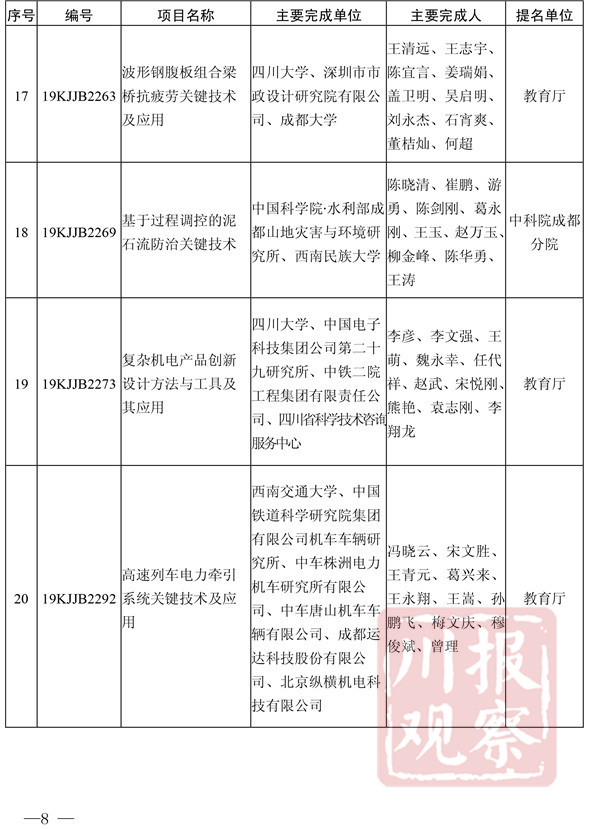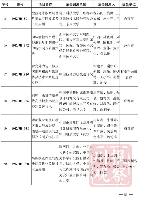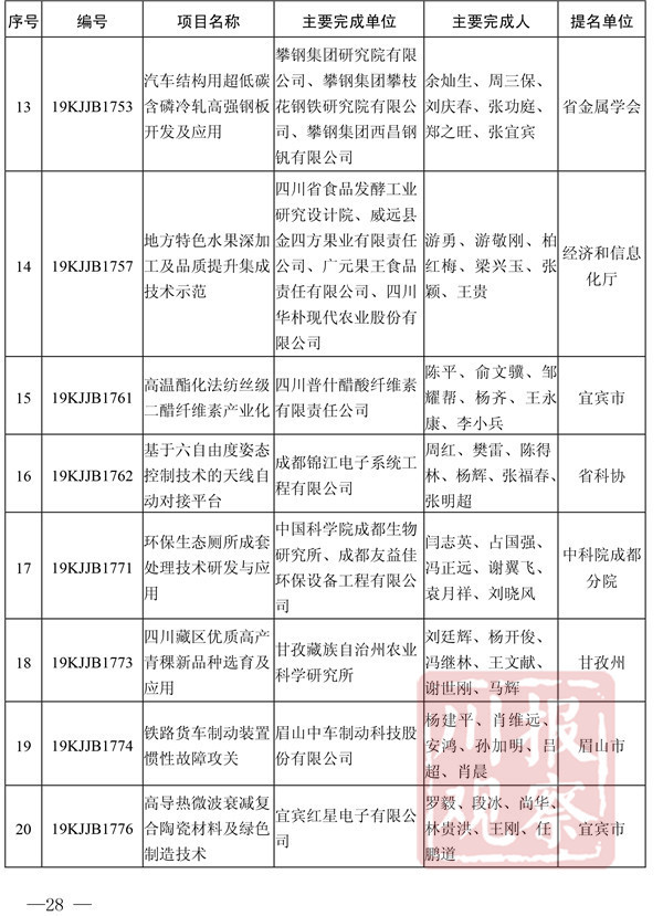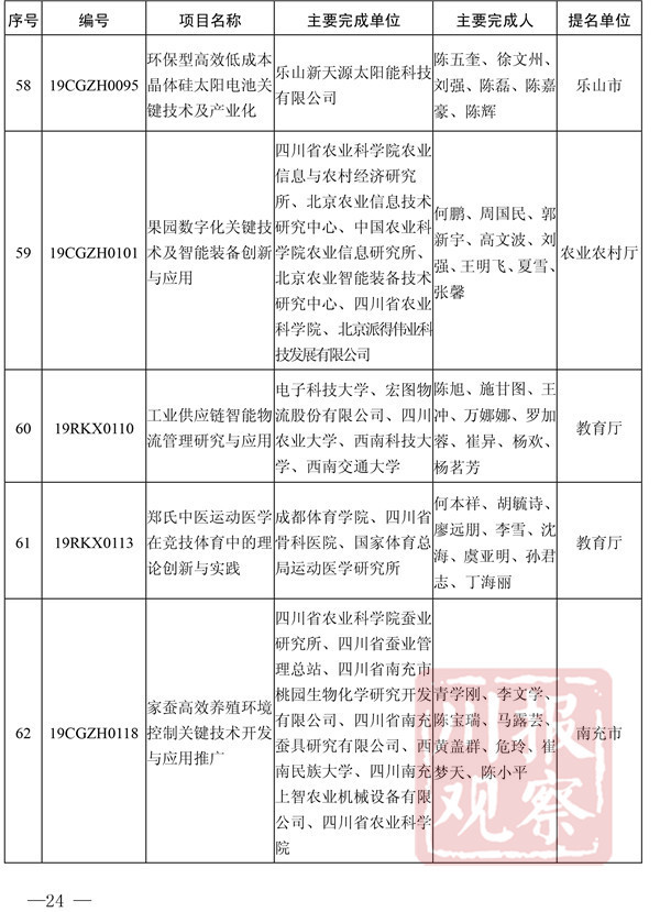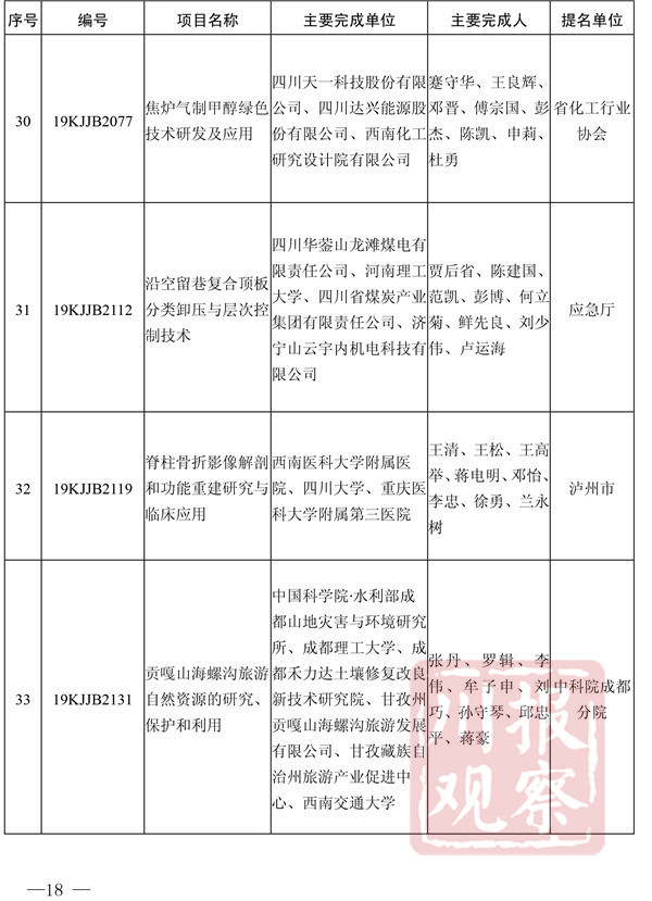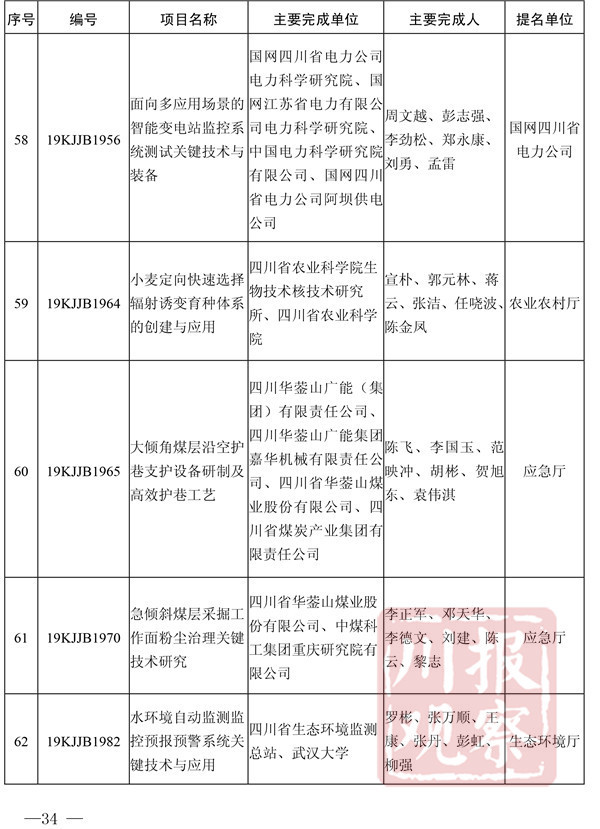 4月21日上午,在蓉举行的四川省科学技术奖励大会公布了2019年度四川省科技进步奖获奖名单。