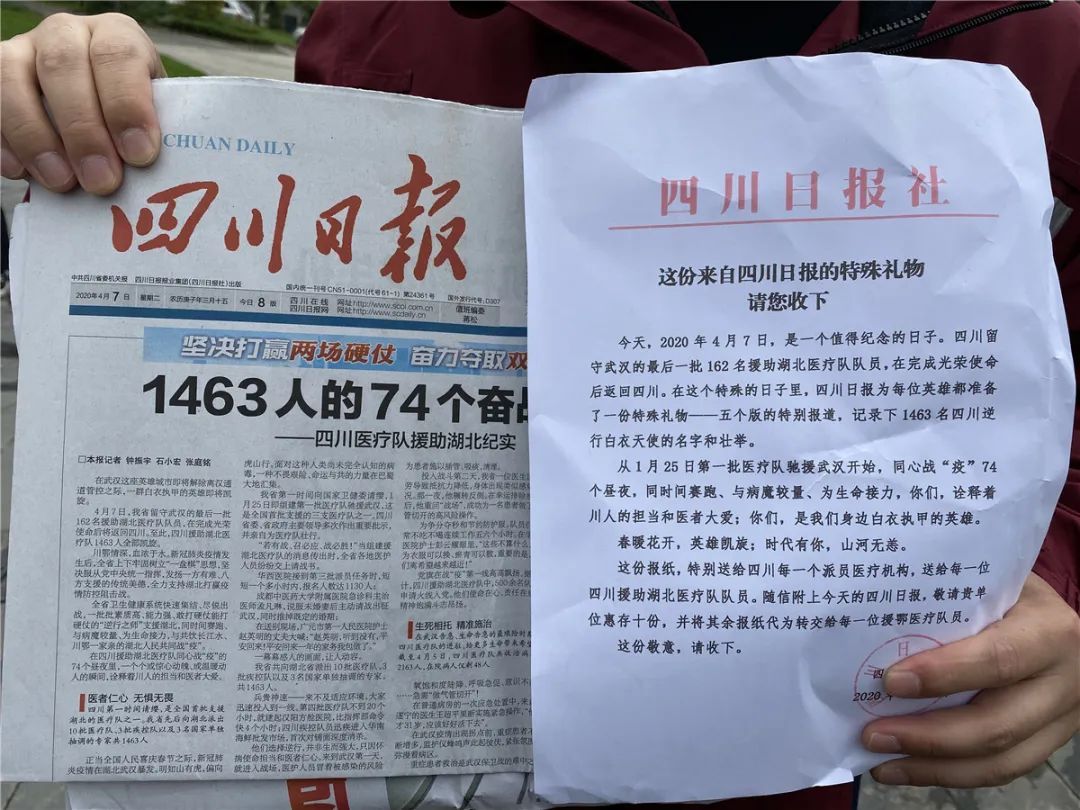 邓凯元展示收到四川日报社的特制礼物 王斌摄