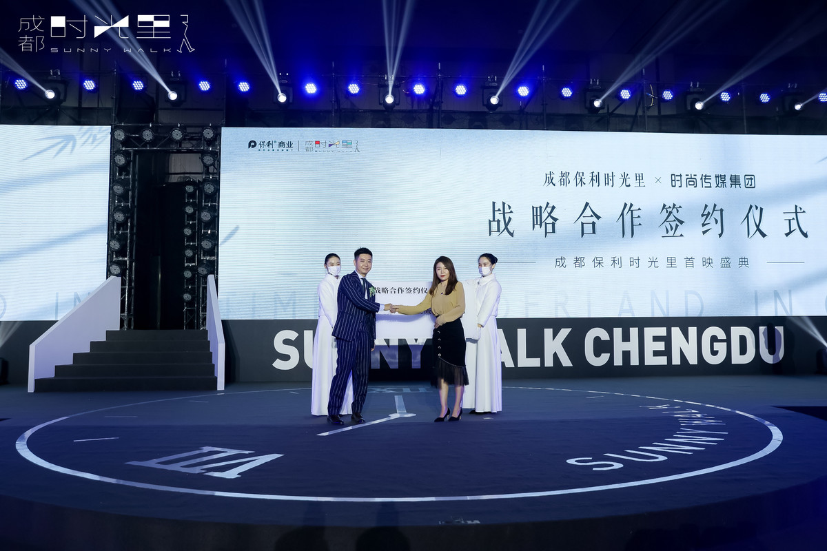 当天,成都保利时光里与时尚传媒集团举行战略合作签约。保利商业正与合作伙伴共创购物中心领域的时尚内容,共同带来城市级文化艺术作品。